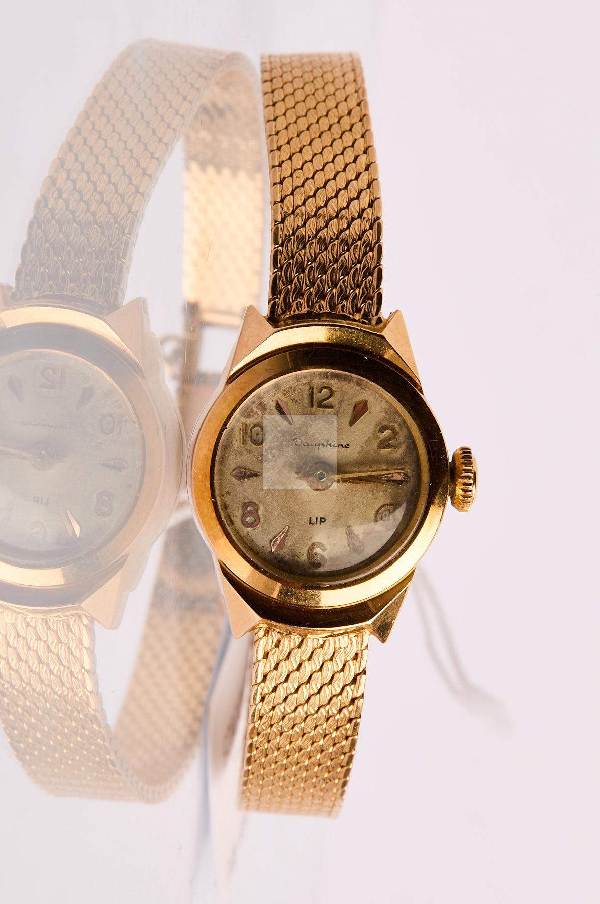 Lot n°277 - 277 LIP : montre Dauphine dame, bracelet en or jaune 750 ‰, mouvement mécanique,
