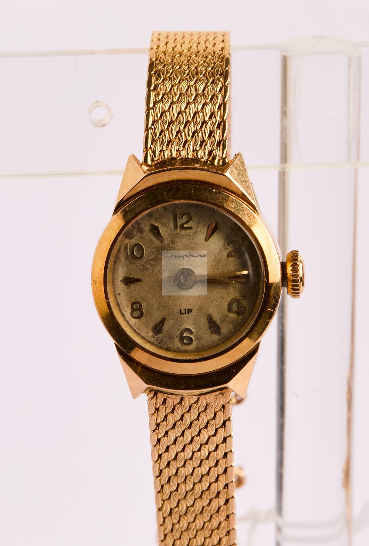 277 LIP : montre Dauphine dame, bracelet en or jaune 750 ‰, mouvement mécanique, poids brut 26,8 g