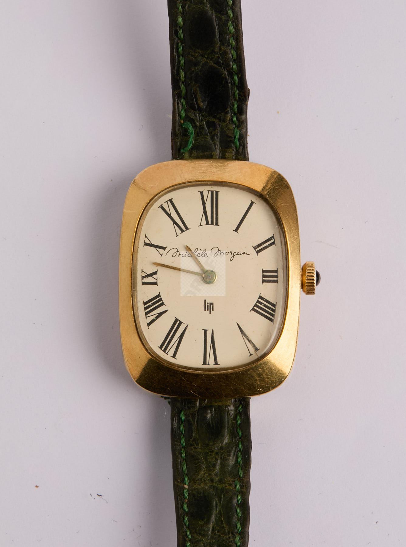 Lot n°281-B - 281 Bis LIP par Michèle Morgan, montre de dame boitier or 750/1000, bracelet cui