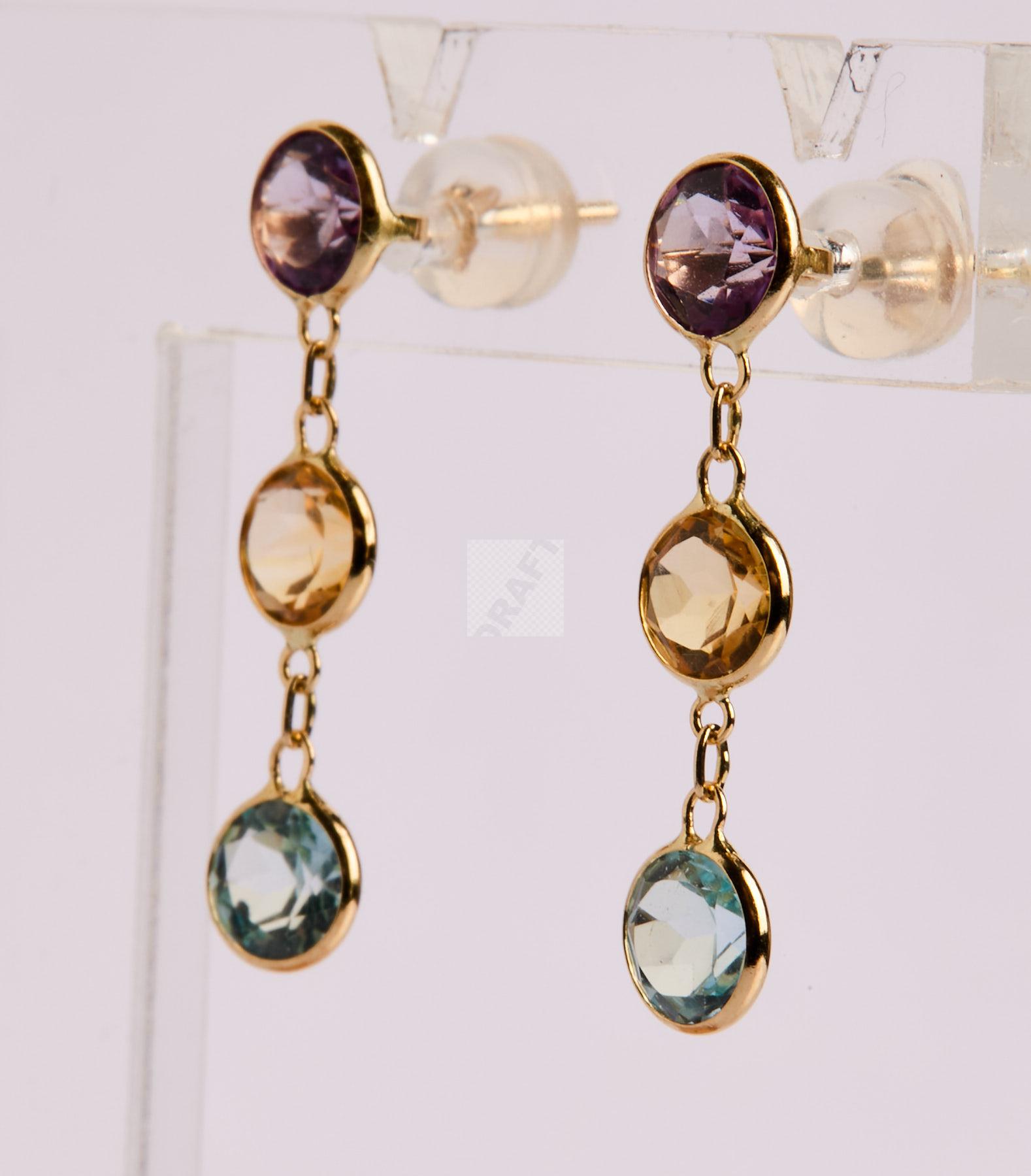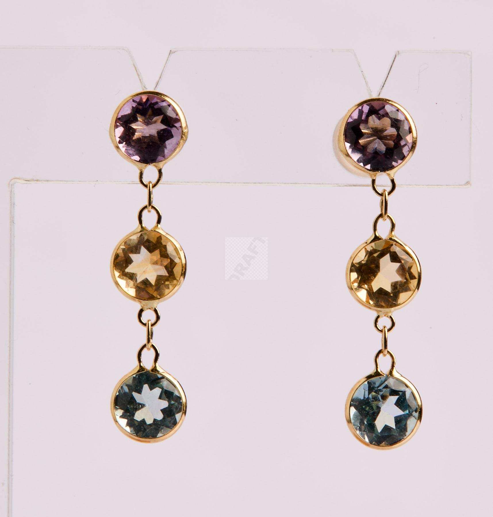 297 Paire de pendants d’oreilles en or jaune 750/1000 sertie de topazes, citrines et améthystes.