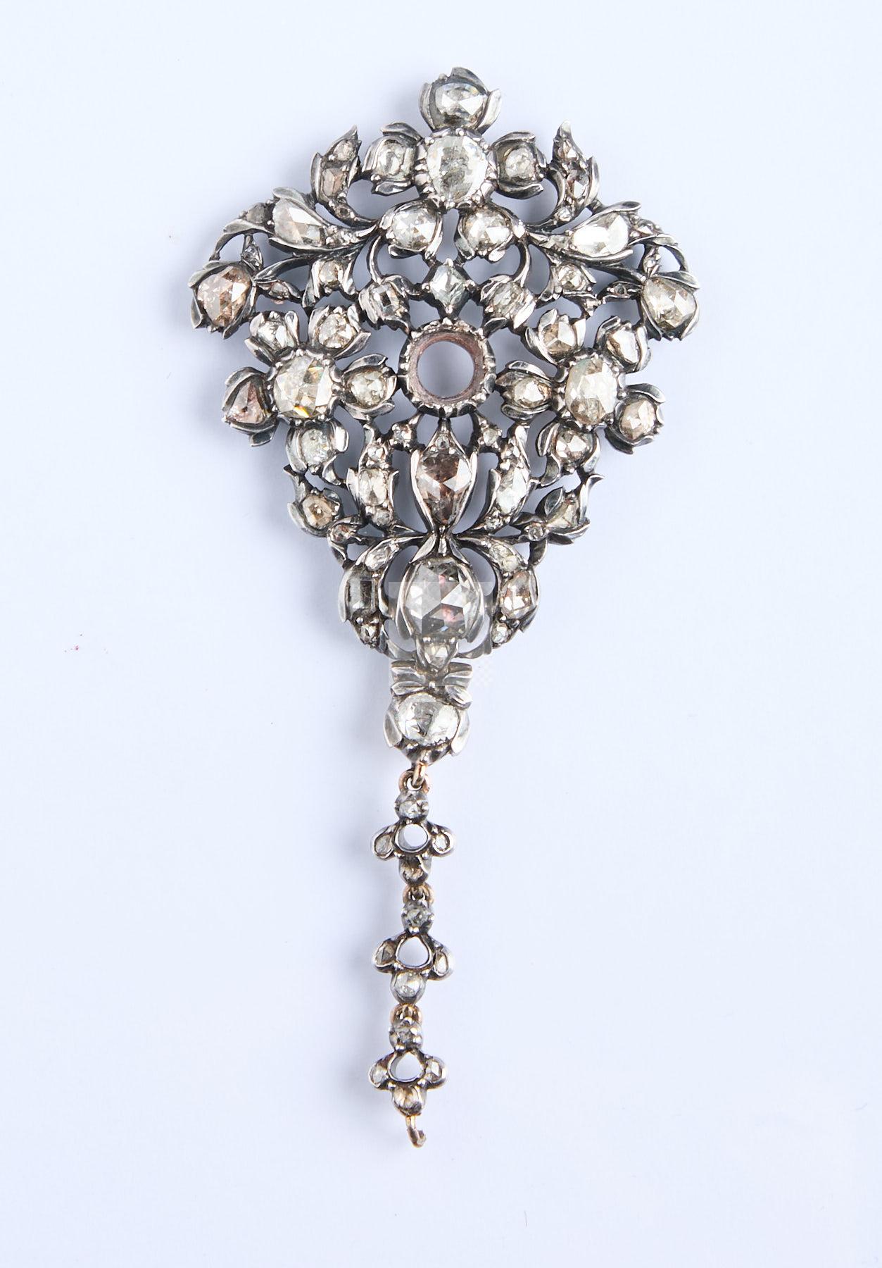 Lot n°305 - 305 Pendentif en argent d’époque XVIII° serti de roses de diamants sur clinquant