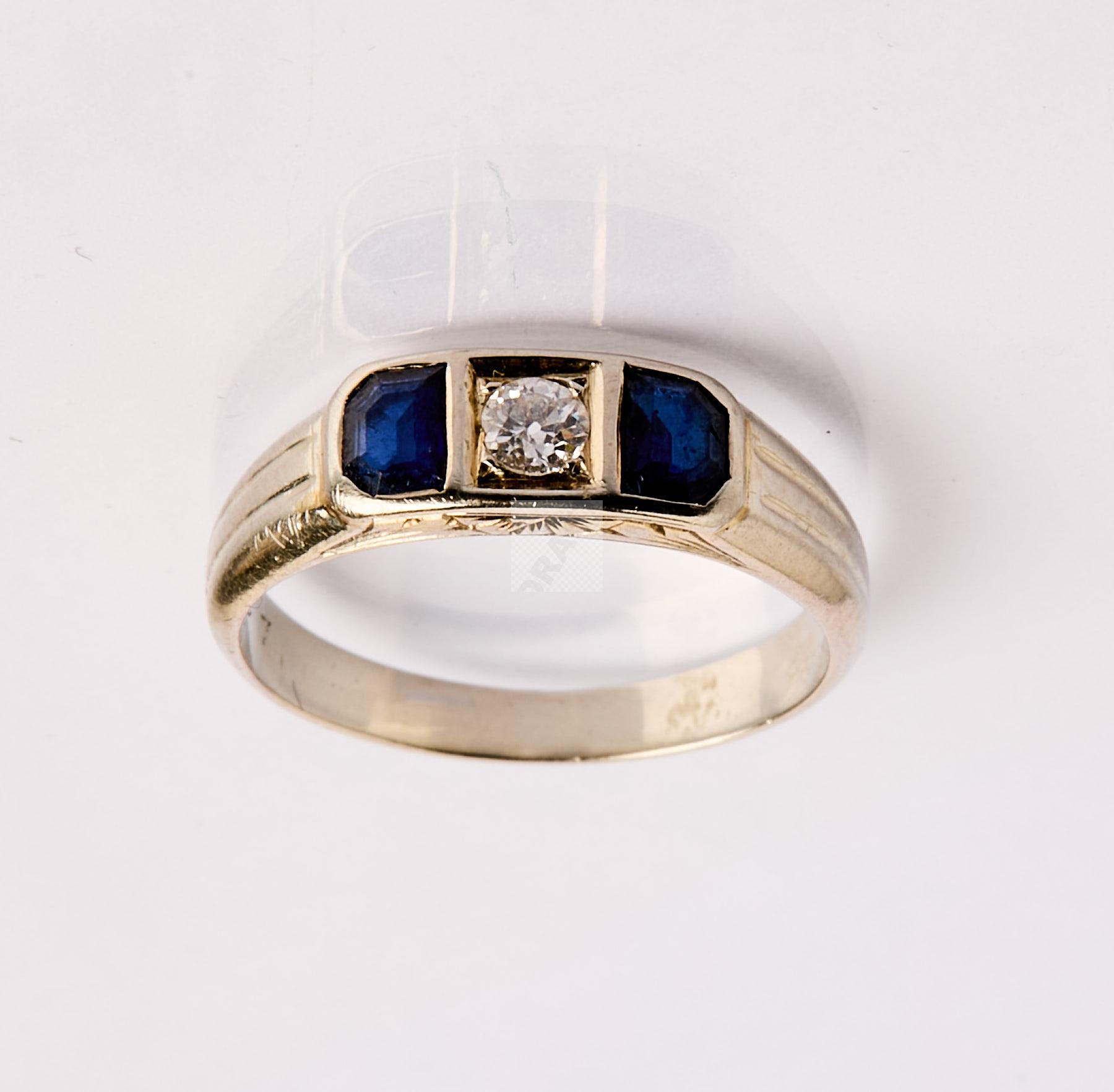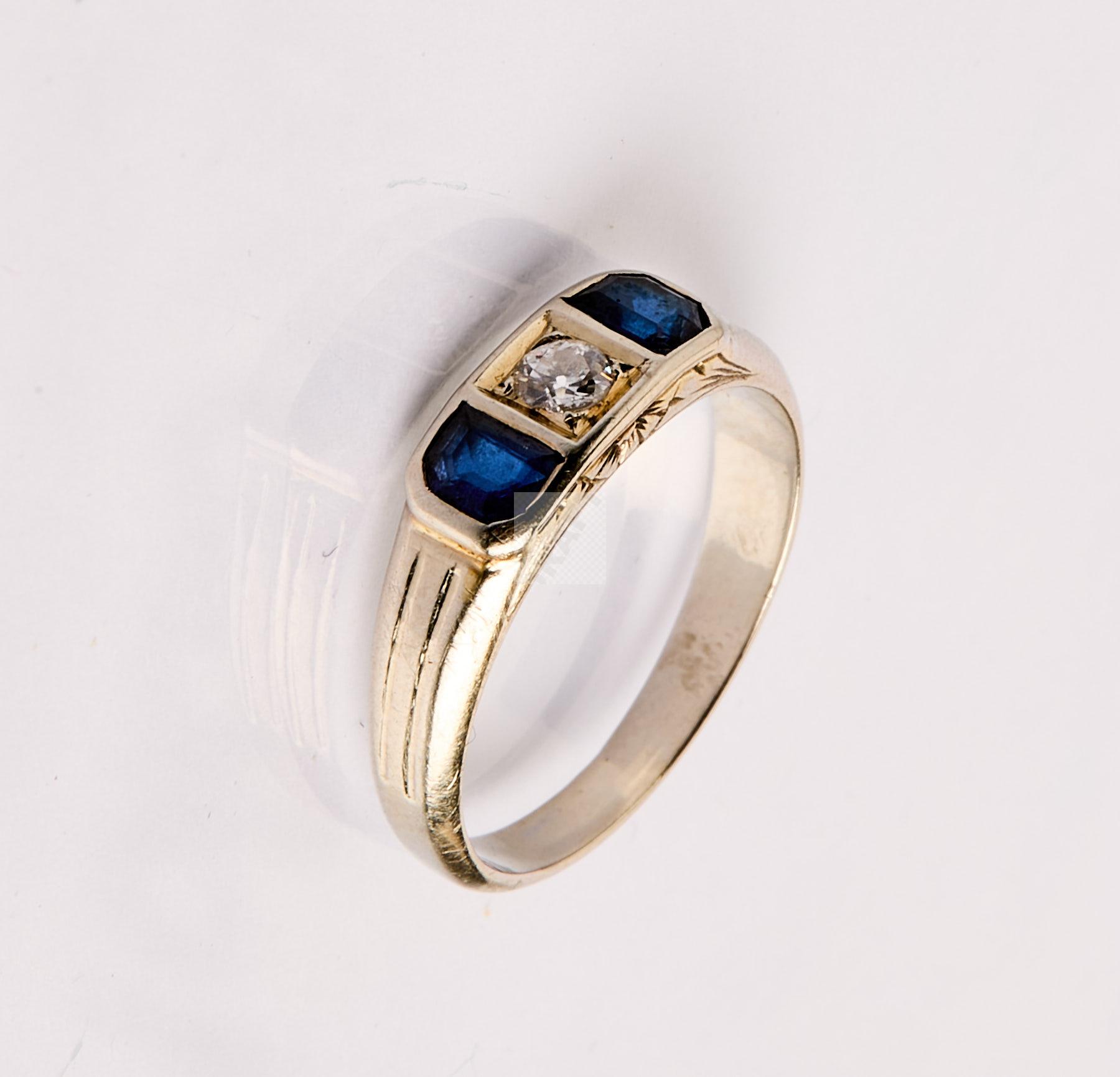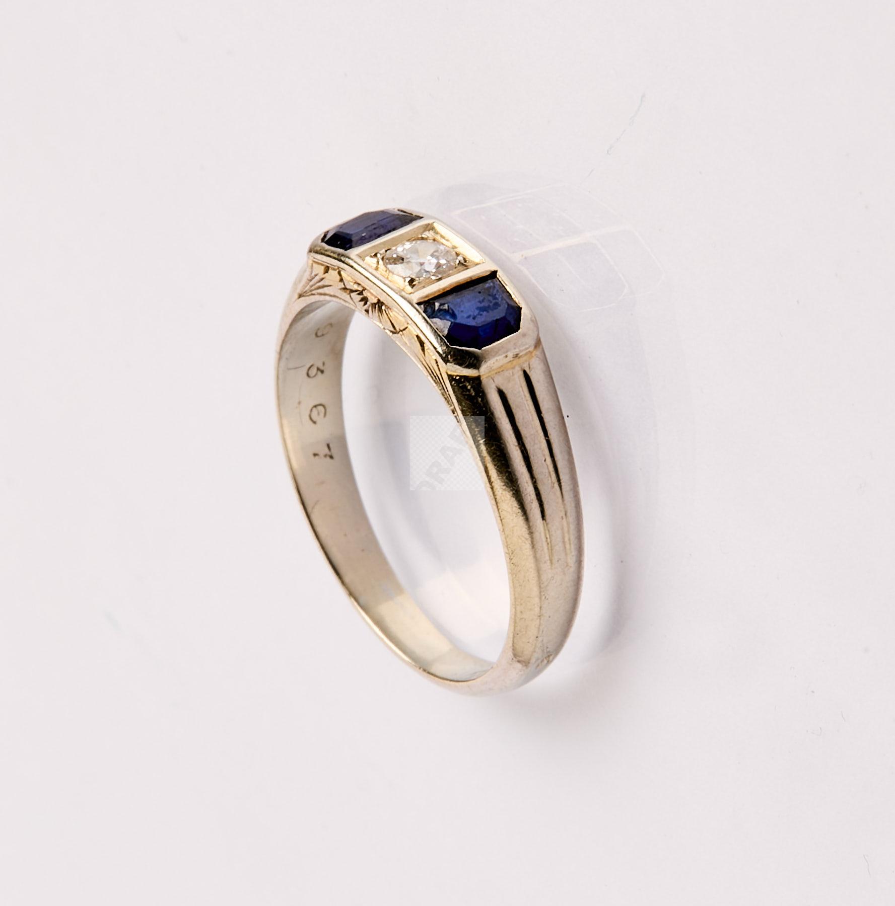 318 Bague en or gris sertie d’un diamant taille ancienne d’environ 0,10 ct entouré de petits saphirs.