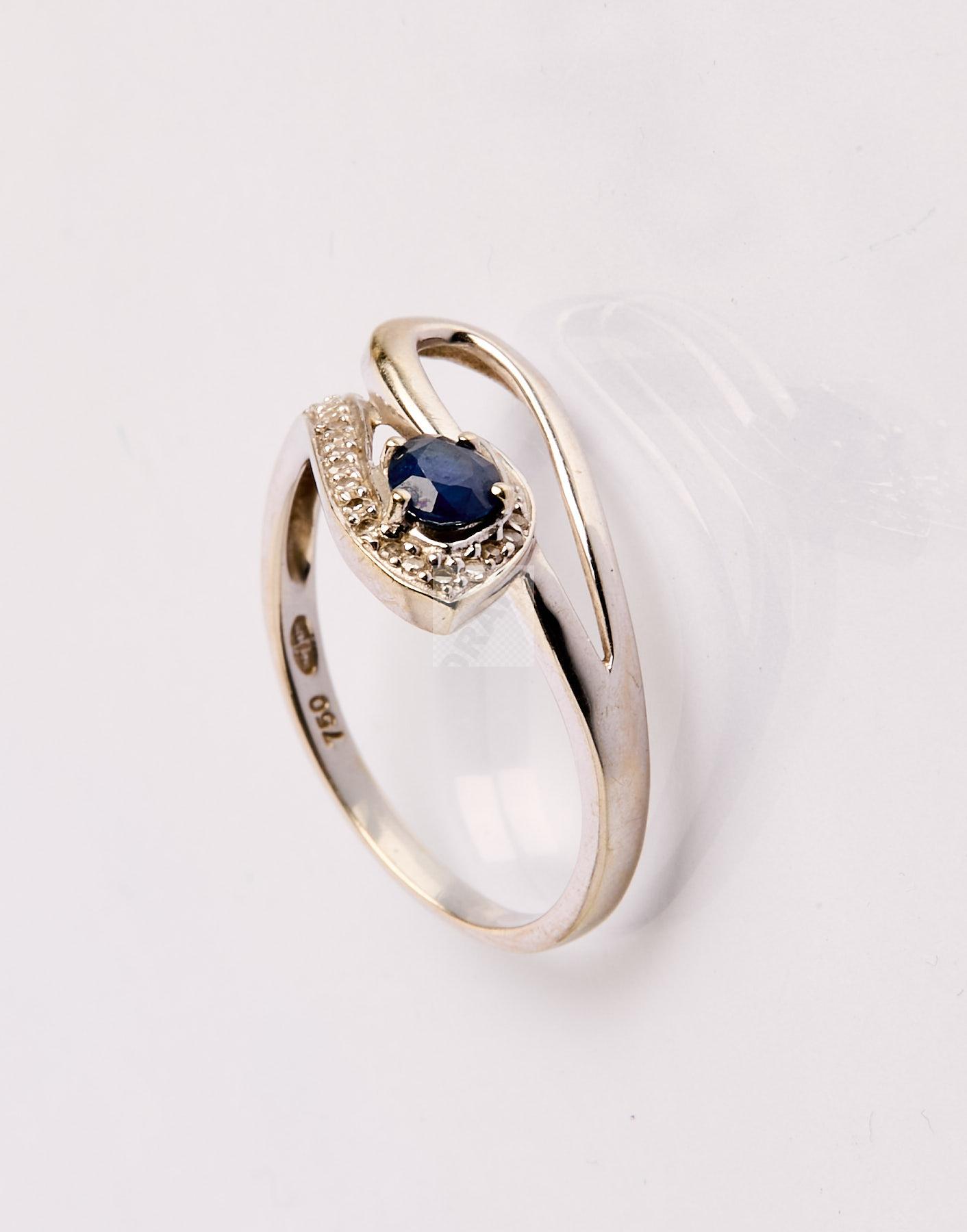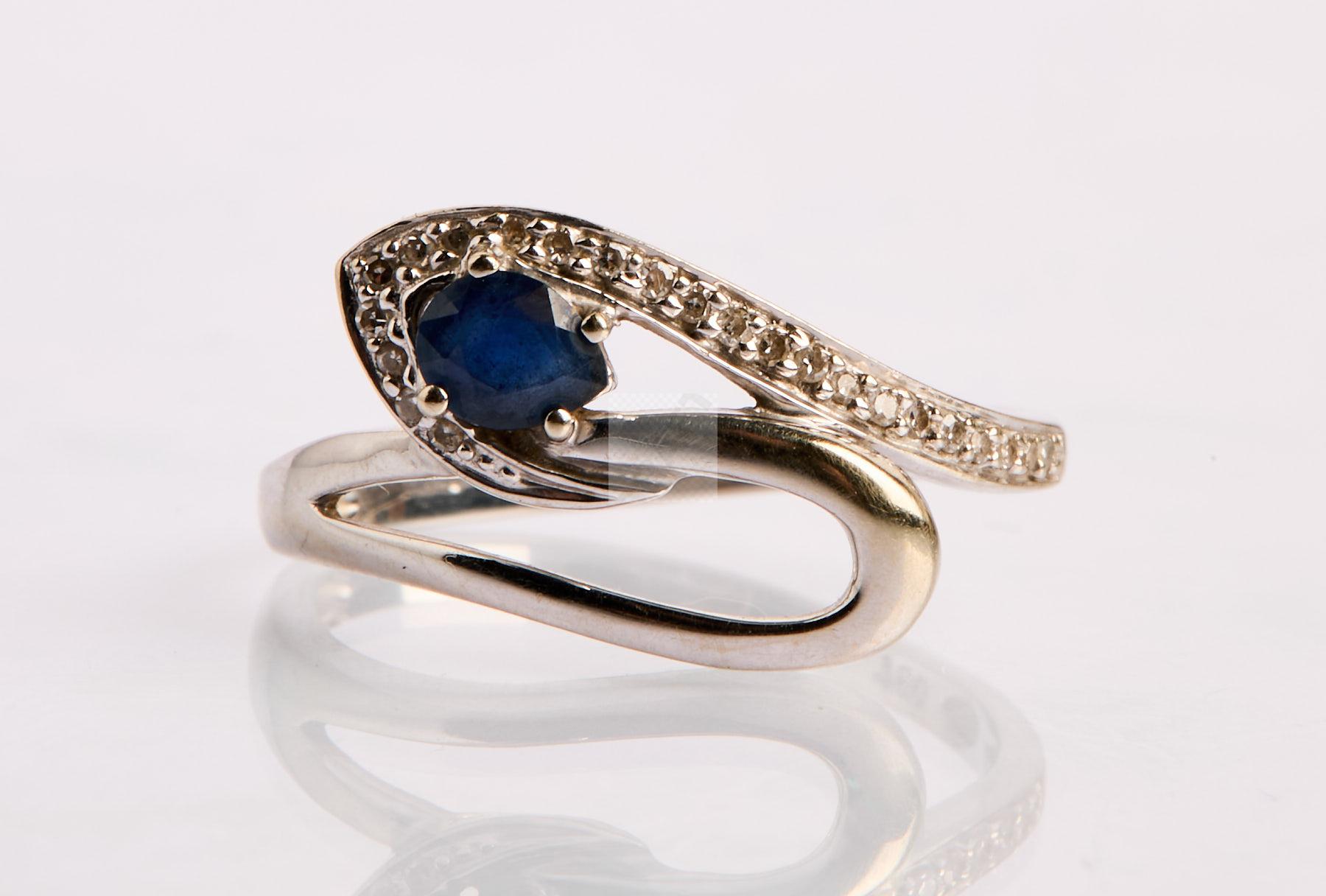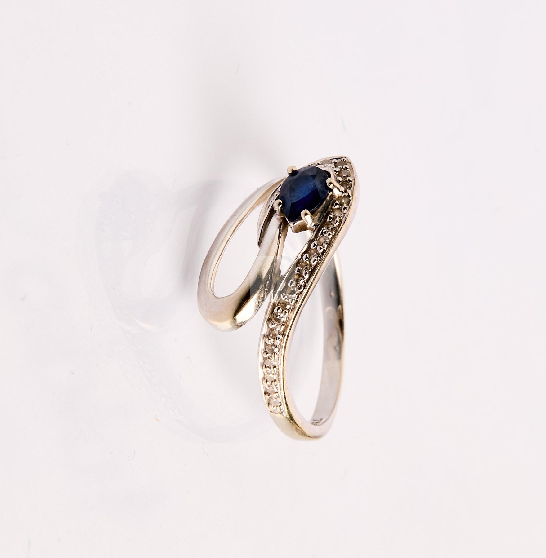 Lot n°343 - 343 Bague serpent stylisé en or gris 750 ‰, saphir et petits diamants, tour de d