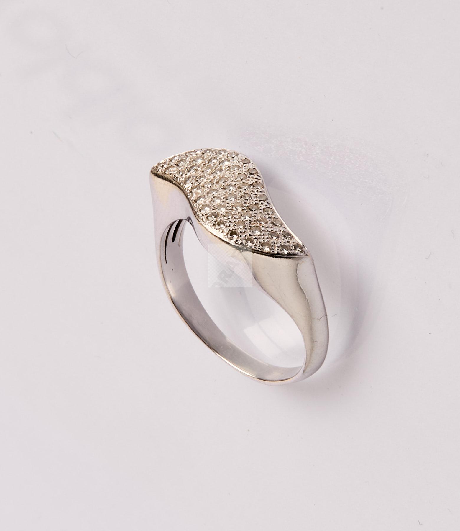 346 Bague vaguelette en or gris 750 ‰ pavée de petits diamants, tour de doigt 56, poids 5 g