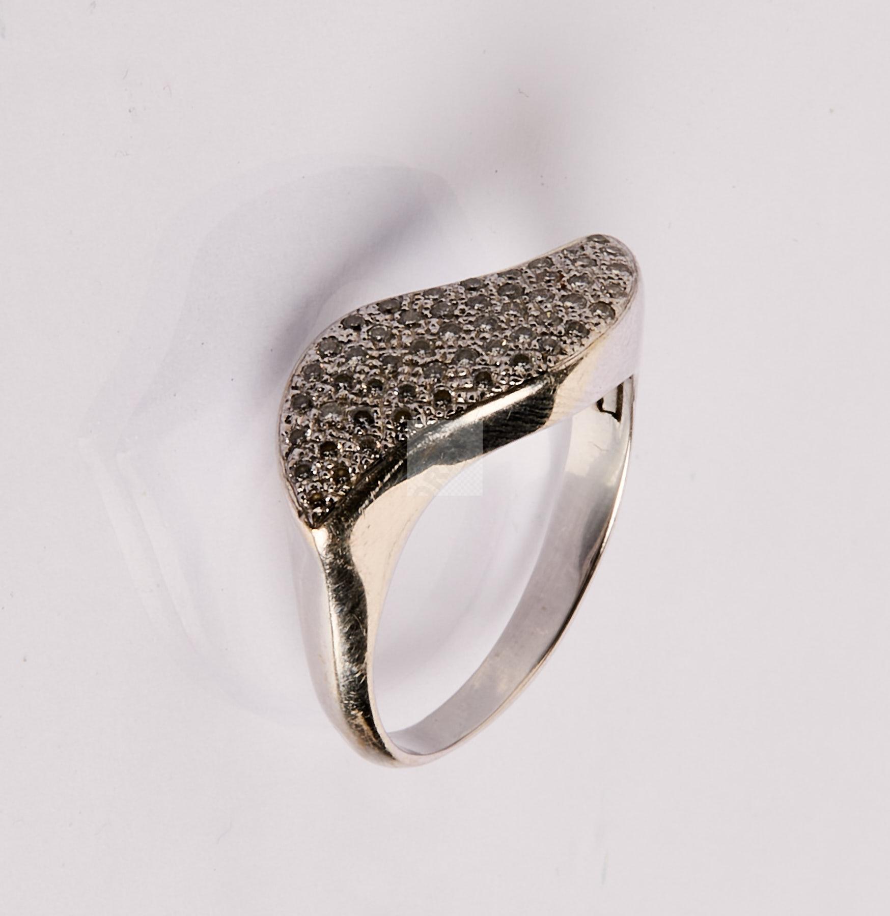 Lot n°346 - 346 Bague vaguelette en or gris 750 ‰ pavée de petits diamants, tour de doigt 5