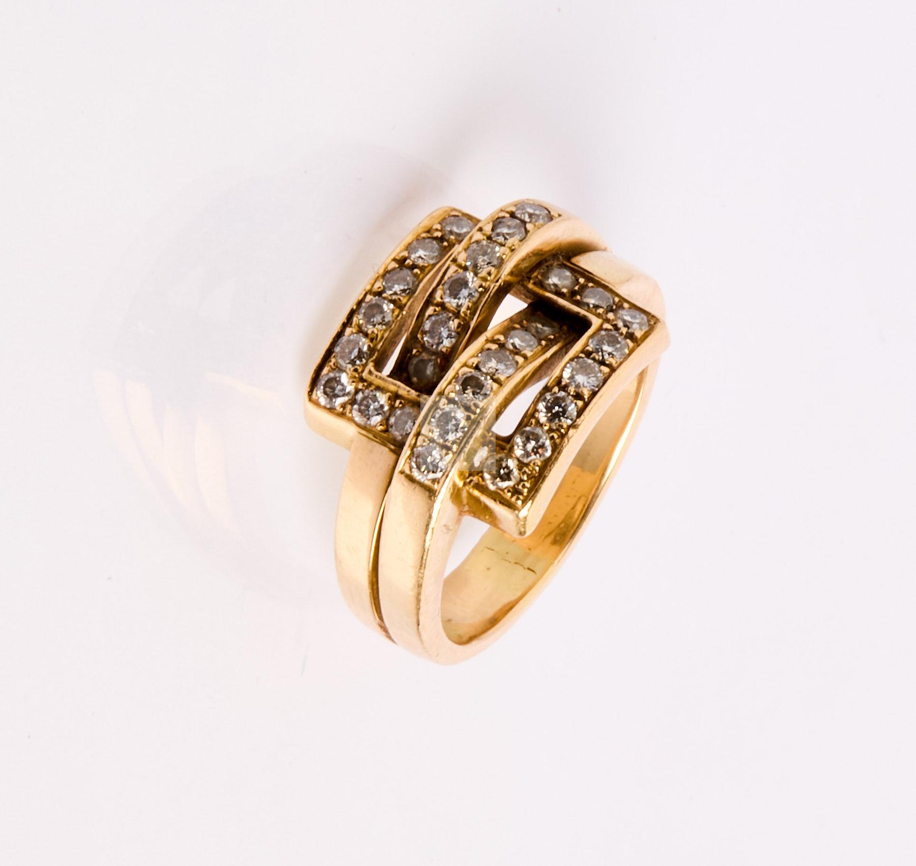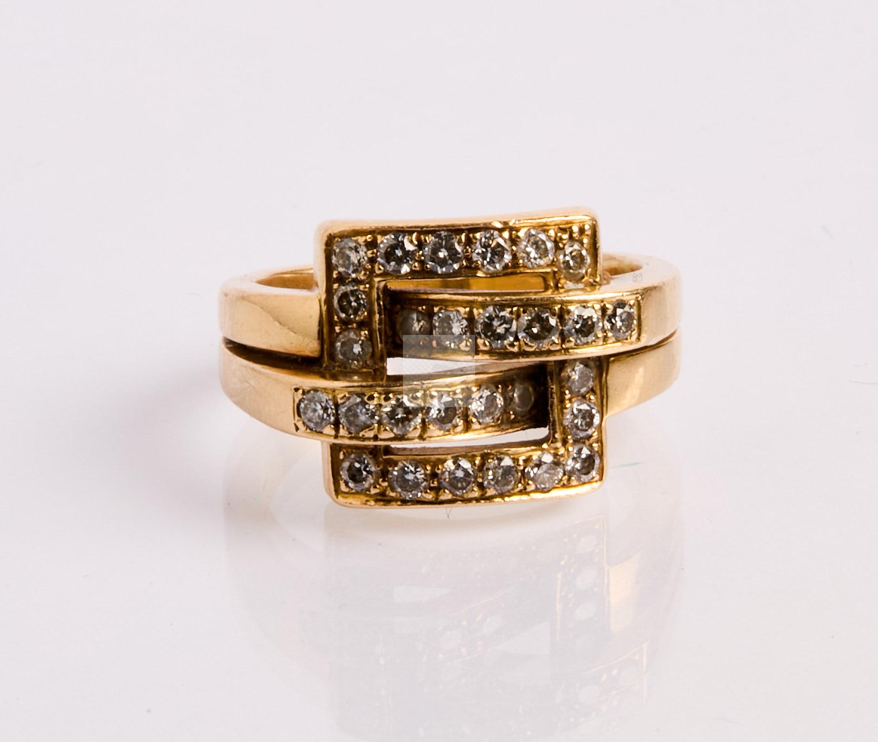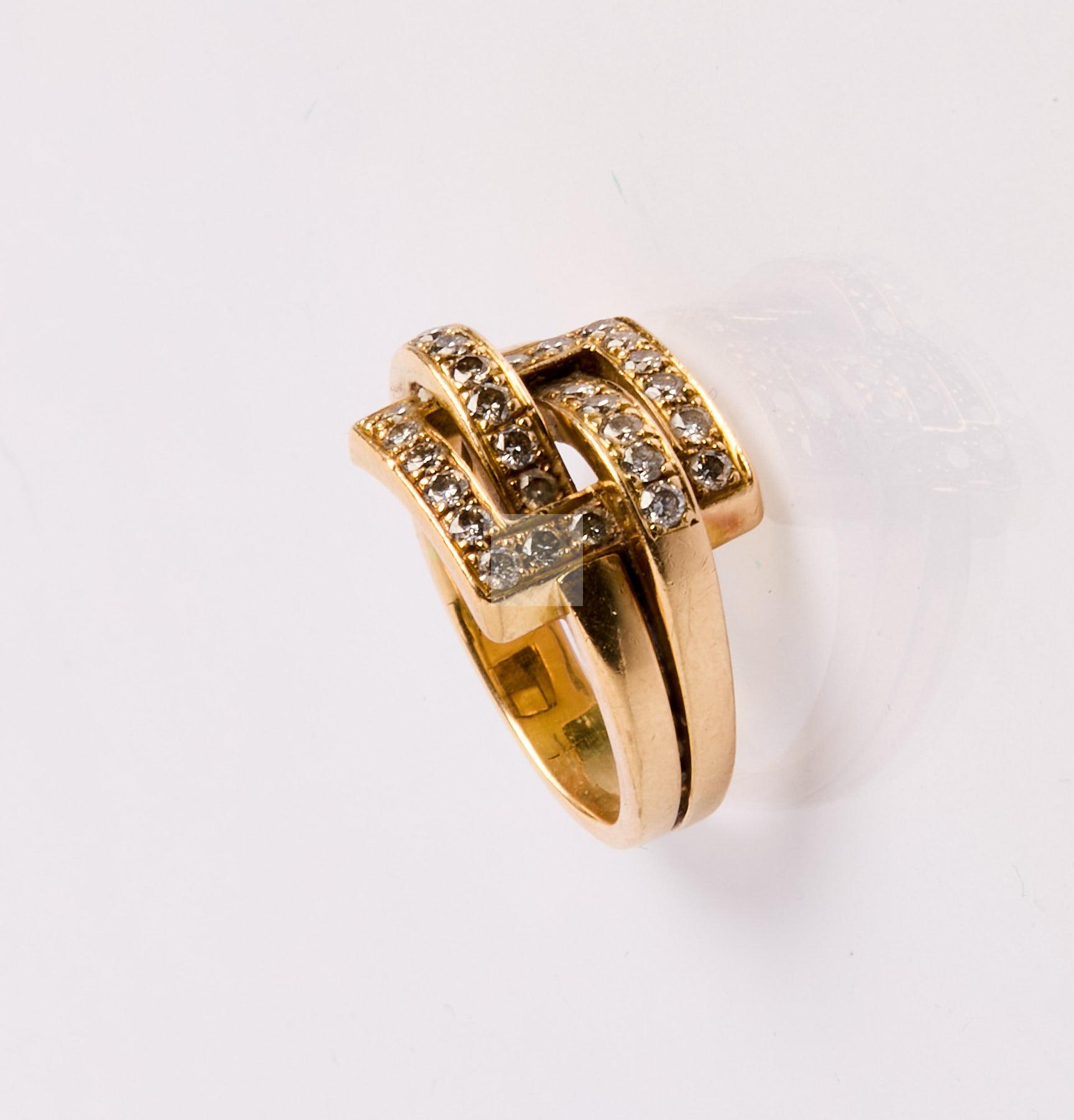 347 Bague carrés croisés en or jaune 750 ‰ pavée de petits diamants, tour de doigt 56, poids 11,3 g