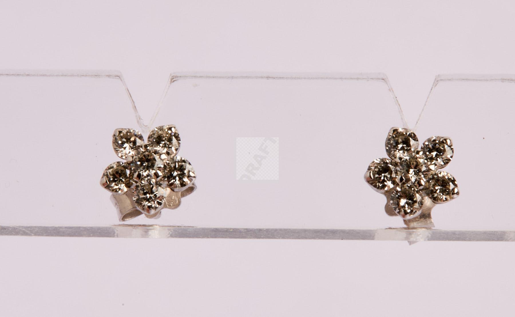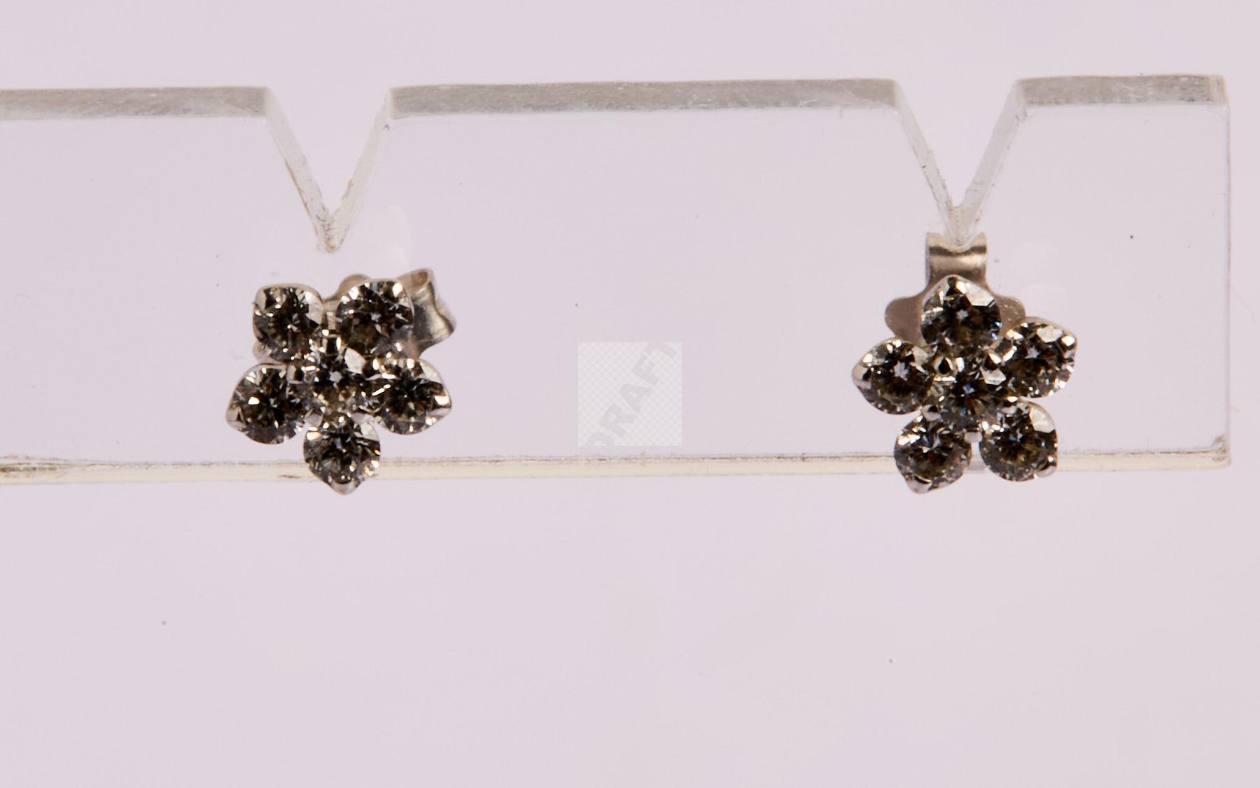 Lot n°348 - 348 Paire de clous d’oreilles fleurettes en diamants et or gris 750 ‰ sur pouss