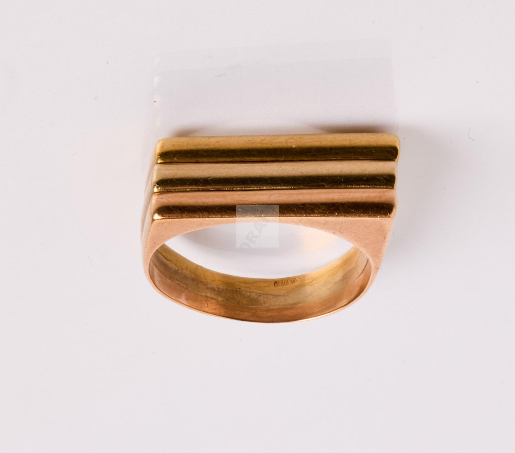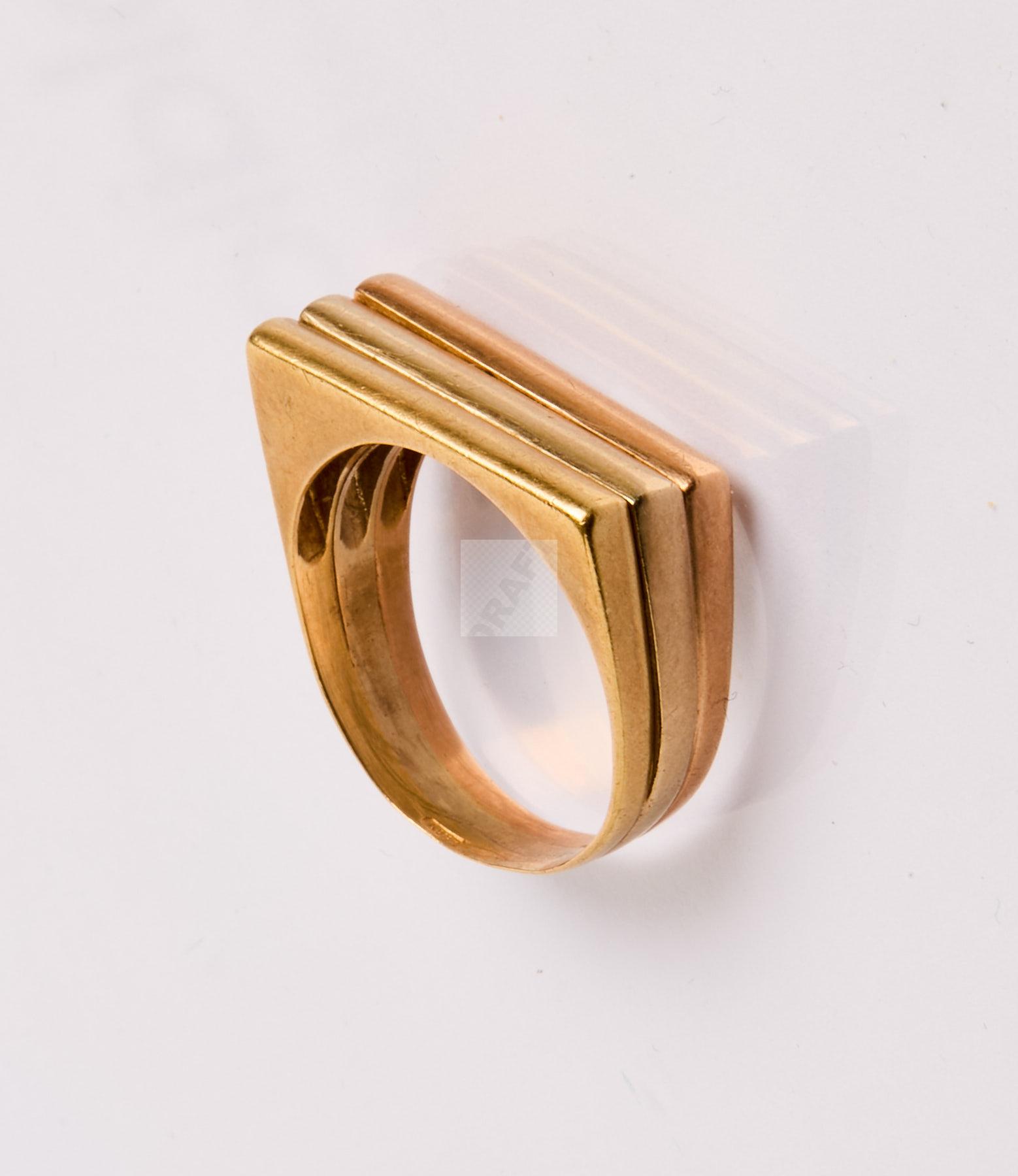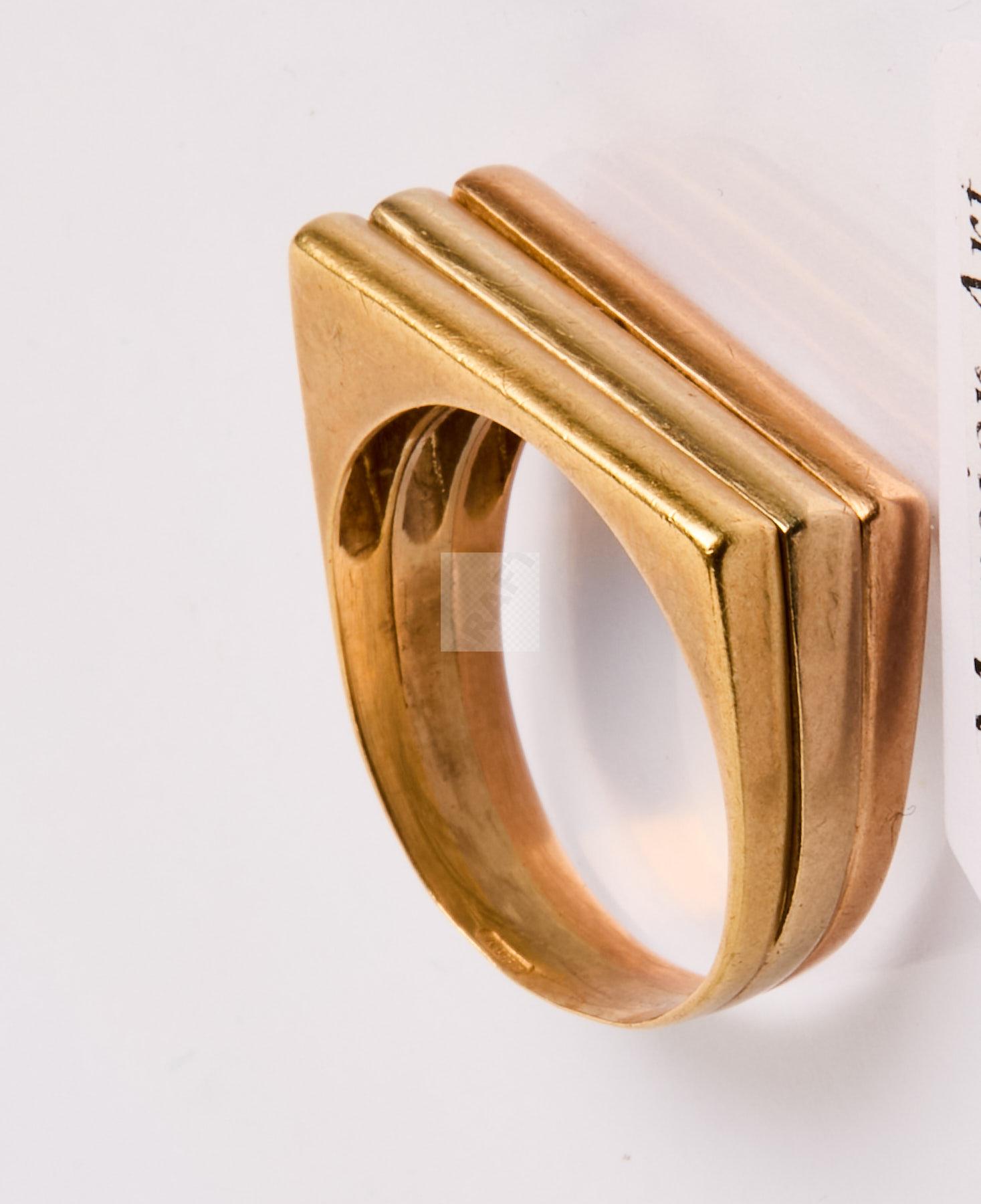 Lot n°350-A - 350 Chevalière trois ors 750/1000 de forme quadrangulaire godronnée.
