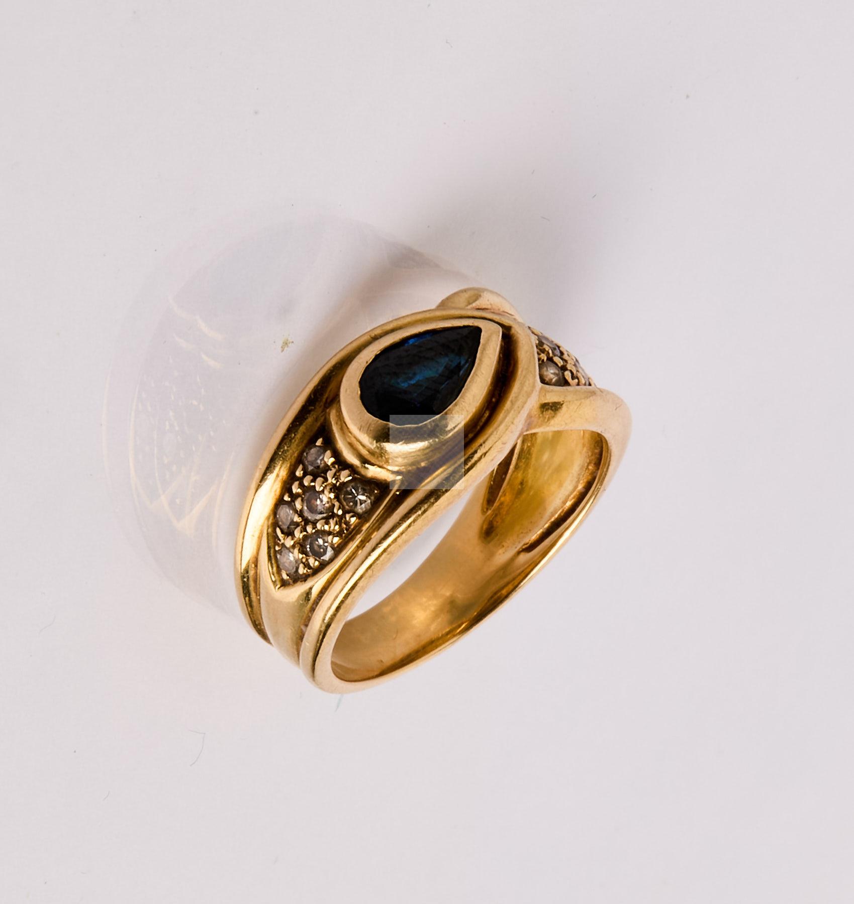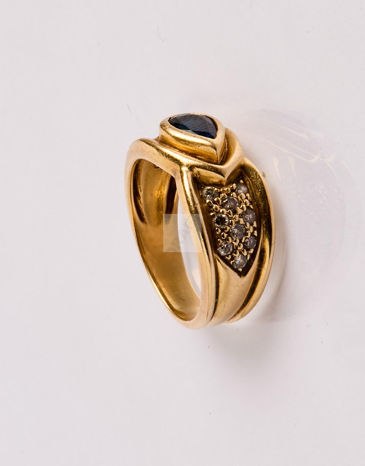 359 Bague bandeau en or jaune sertie d’un saphir et de petits diamants, tour de doigt: 53.