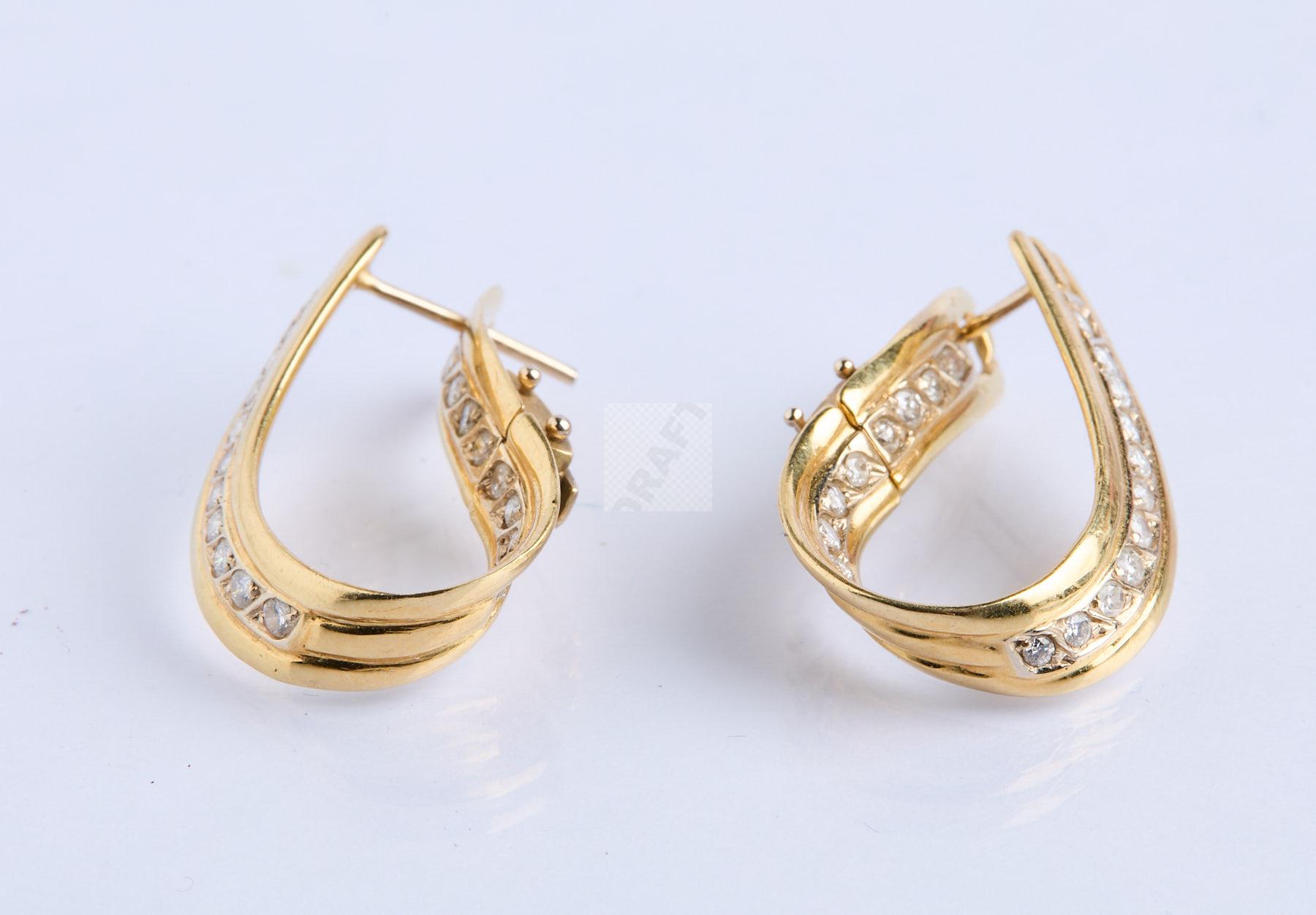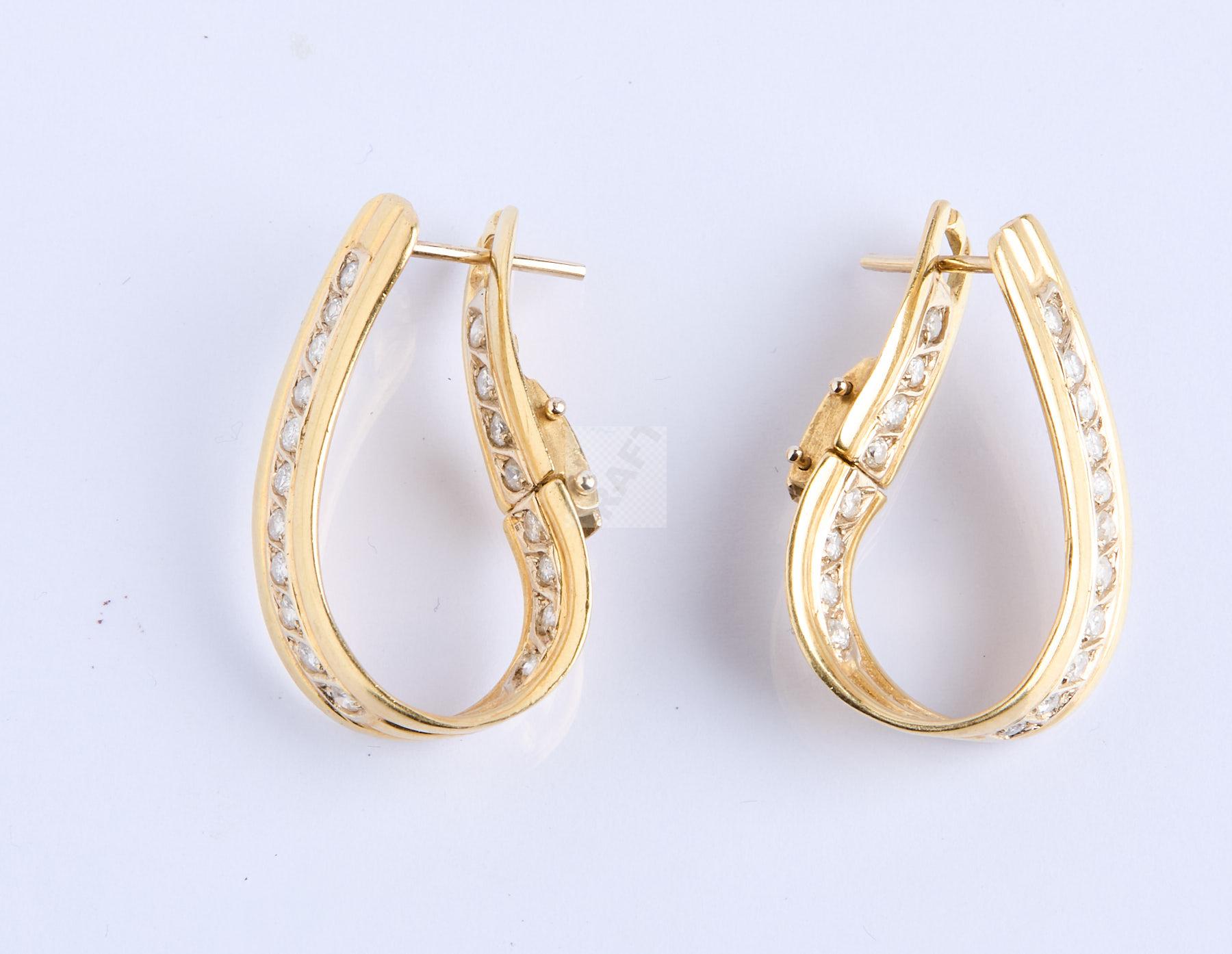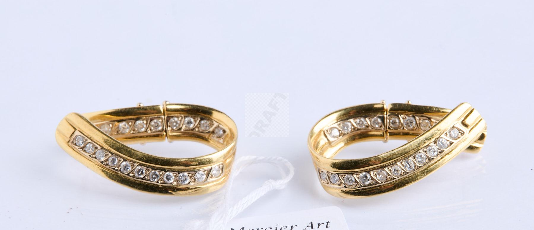 365 Paire de grandes créoles en or jaune serties de rubans de diamants , poids 12,1 g 1597