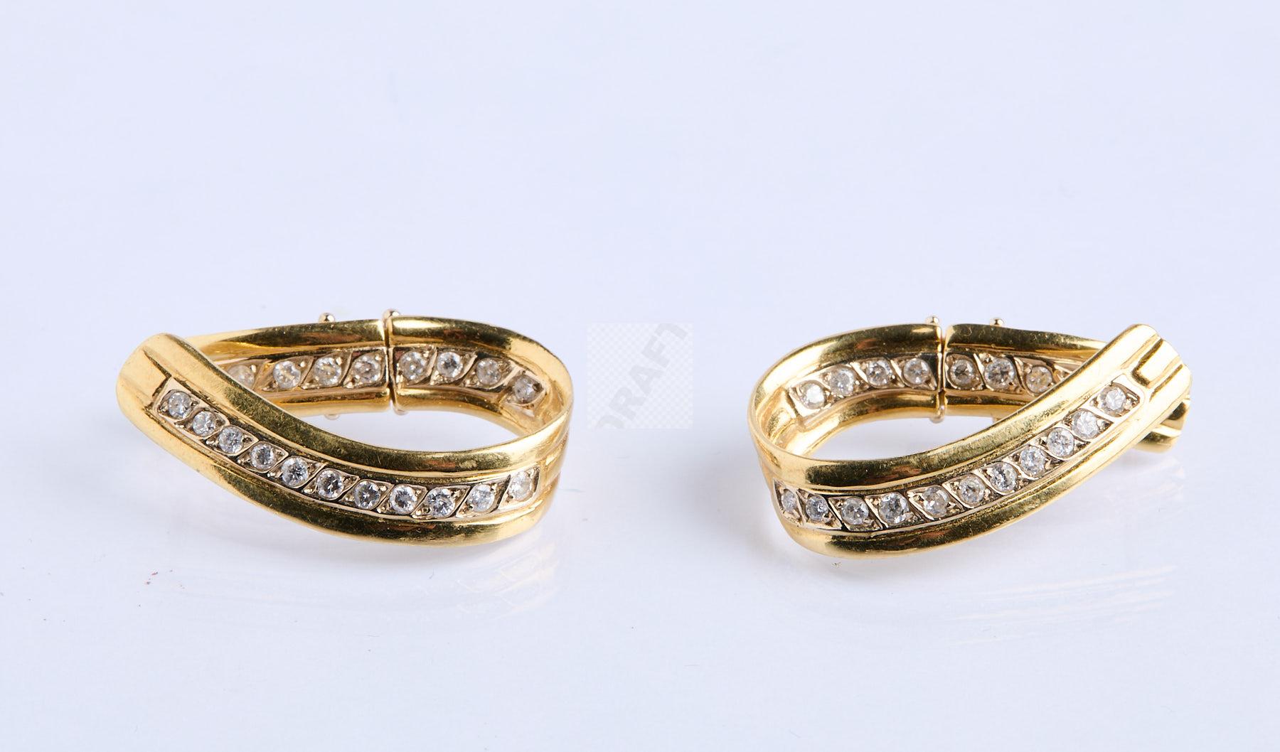 Lot n°365 - 365 Paire de grandes créoles en or jaune serties de rubans de diamants , poids 1