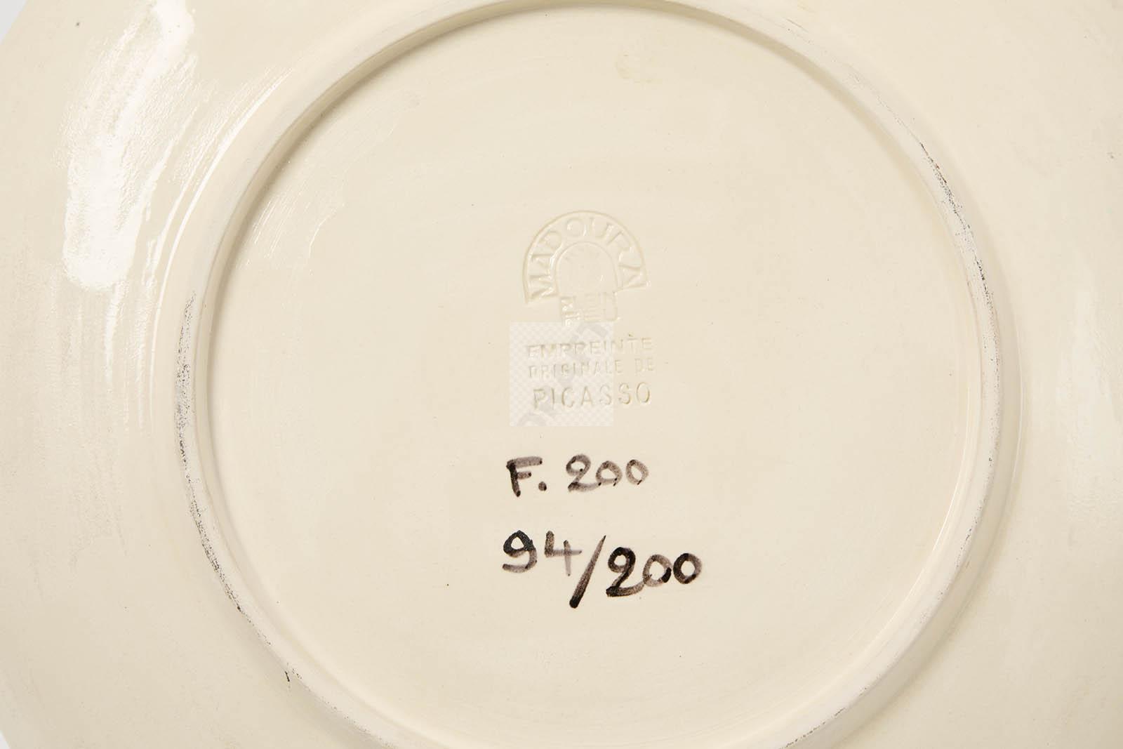 Inscrit et estampillé au-dessous : Empreinte originale de Picasso, Madoura plein feu, numéroté F.200, d’une édition à 200 ex.