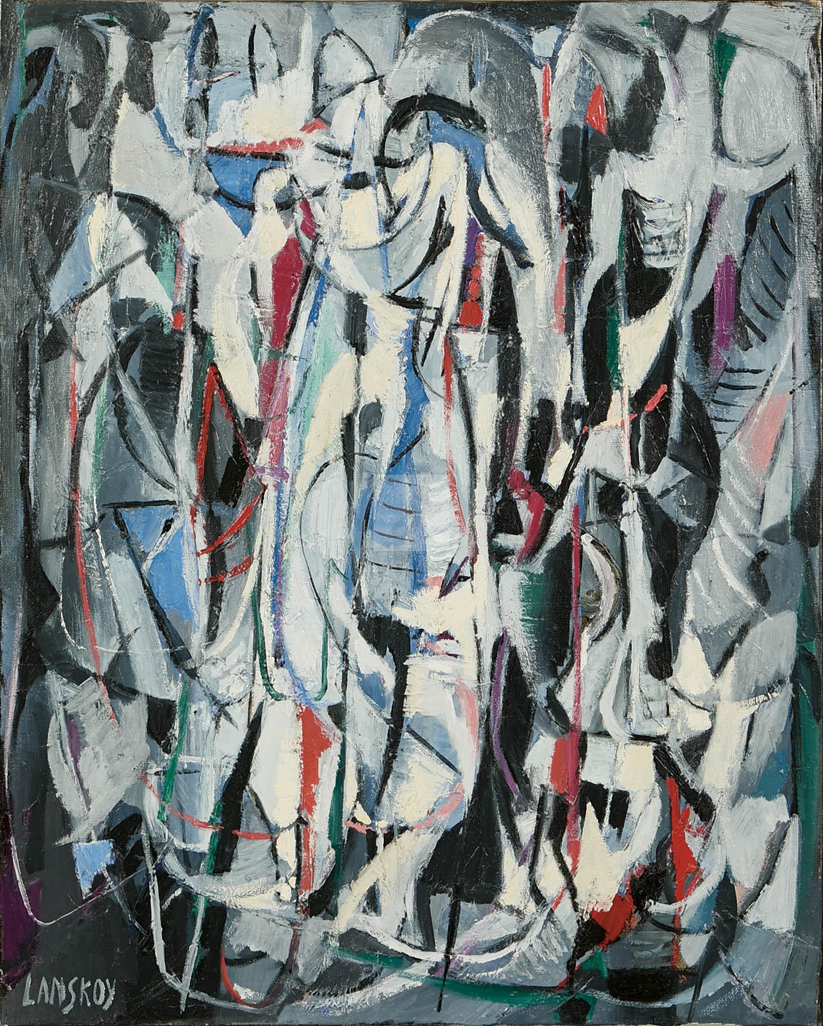« Je commence, confiait Lanskoy, par ébaucher la composition à l’aide de quelques coups de fusain ou de pastel… Puis j’approfondis les formes et j’étudie leurs rapports en me préoccupant de la technique et de la couleur… j’obéis ensuite à la loi que pose le tableau au bout d’un certain temps d’existence : la lutte d’un monde qui veut s’organiser et domine le chaos. »
