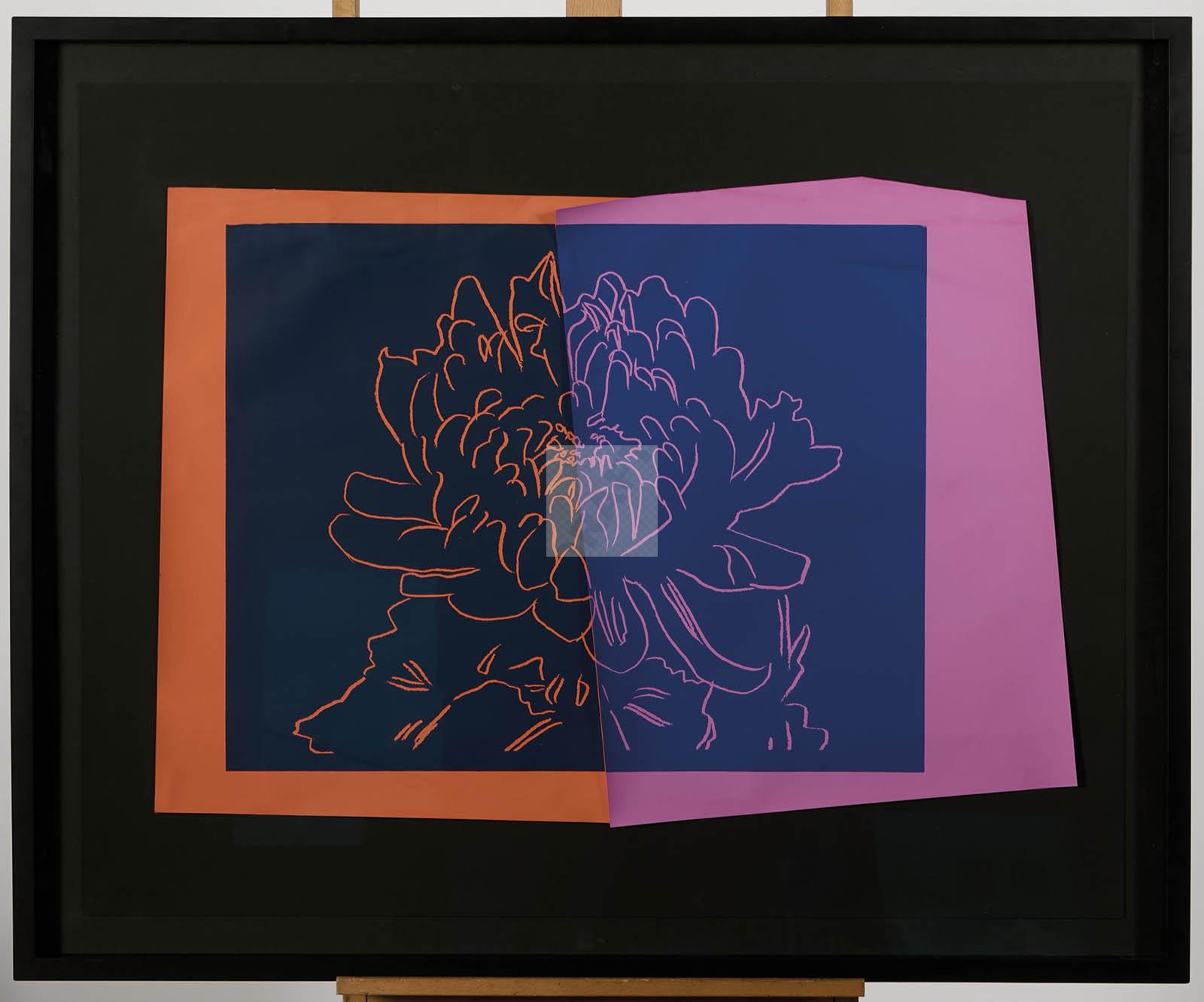 La fleur de chrysanthème – le kiku en japonais – est depuis des siècles l’emblème de l’autorité impériale japonaise, présente aussi bien sur le passeport national que sur le sceau de la famille impériale. En revisitant ce motif dans son langage visuel pop, Warhol propose une interprétation personnelle qui fait écho à la permanence de cette symbolique et rend hommage à la tradition culturelle japonaise.