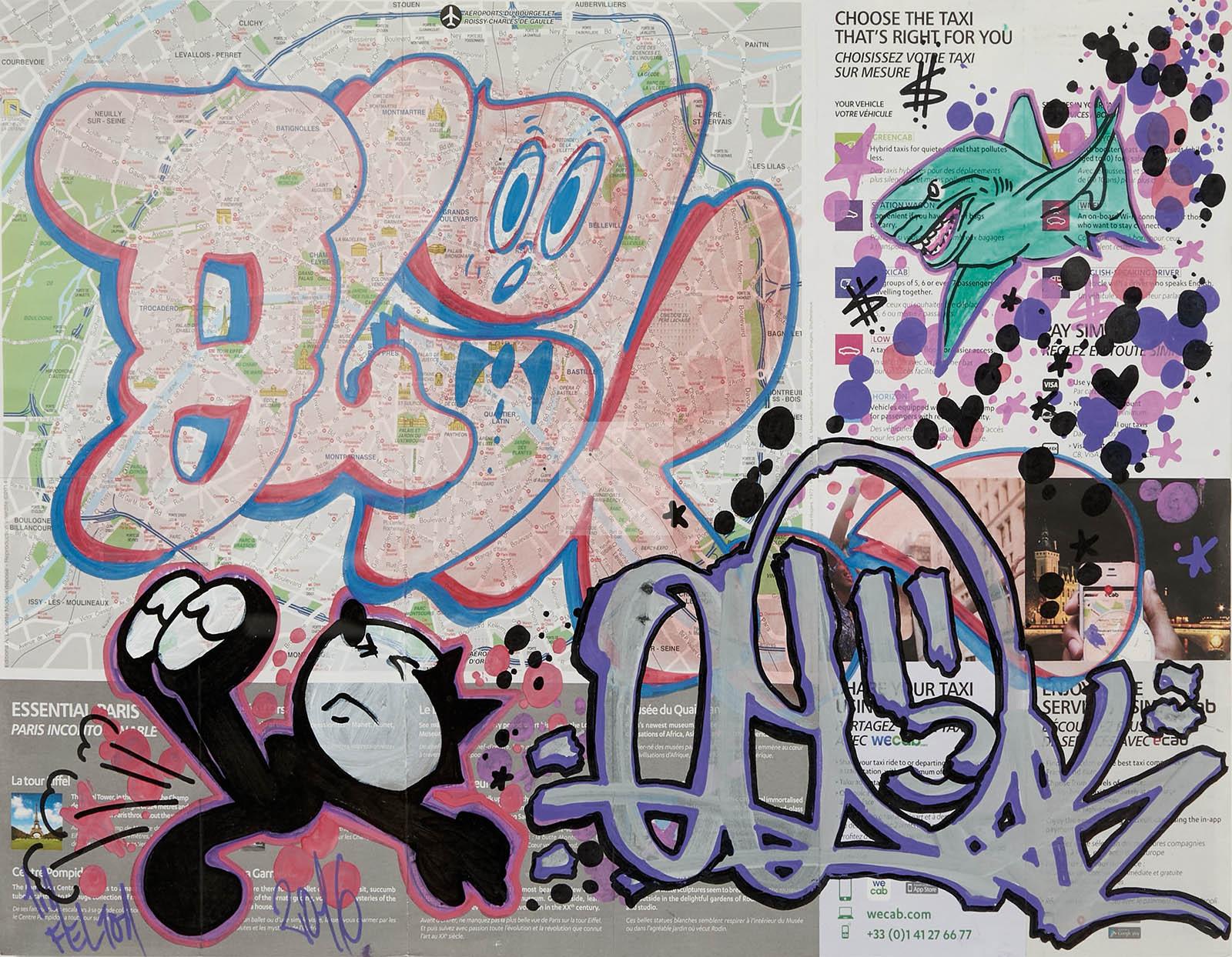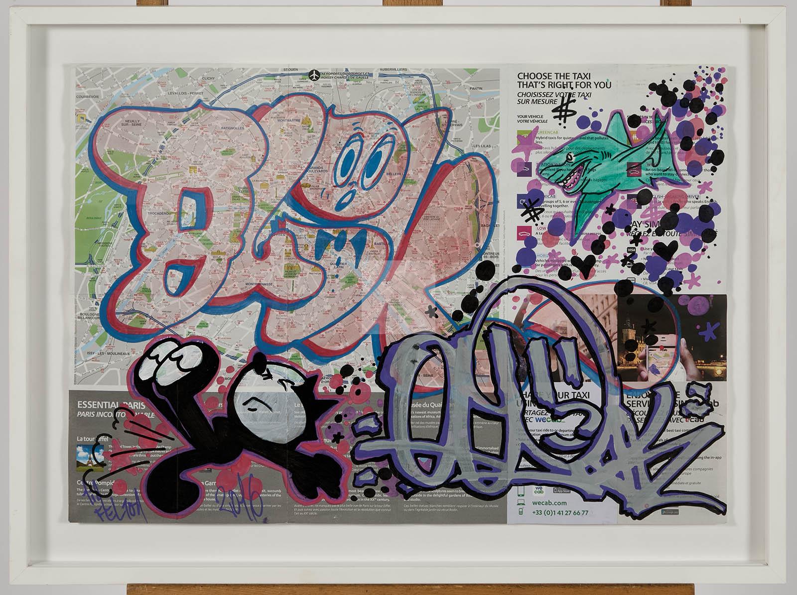 Lot n°97 - 97 QUIK (né en 1958) Felix with shark, 2016 Techniques mixtes sur