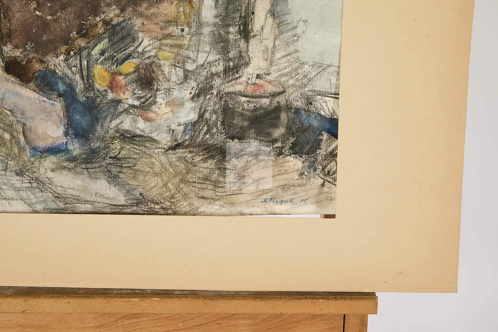 Ensemble de 6 dessins au feutre, fusain ou aquarelle, signés et datés