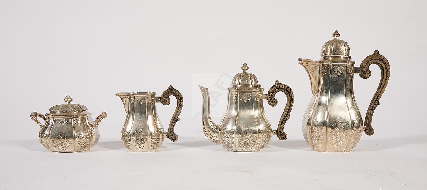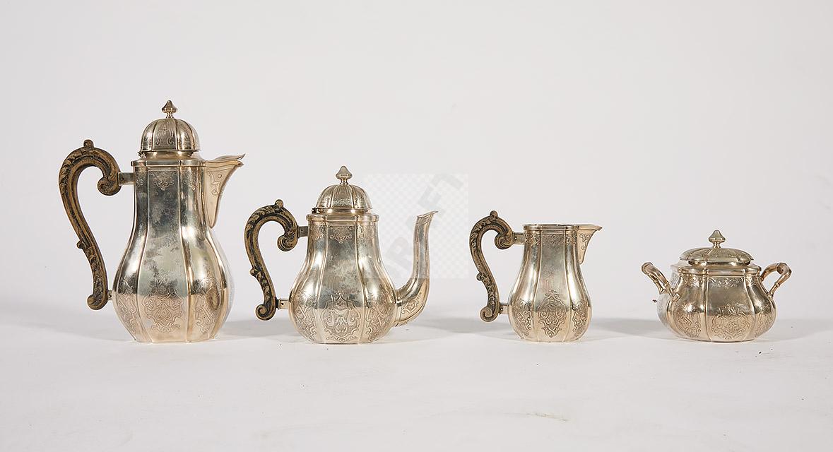 Composé d’une théière, une cafetière, un sucrier, un pot à lait.