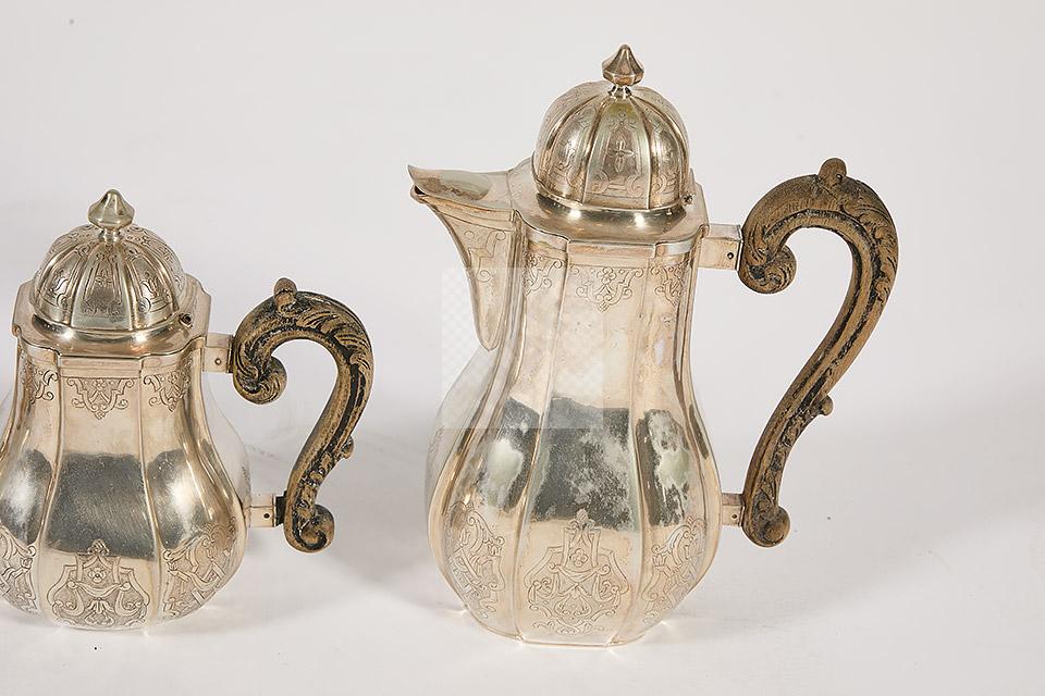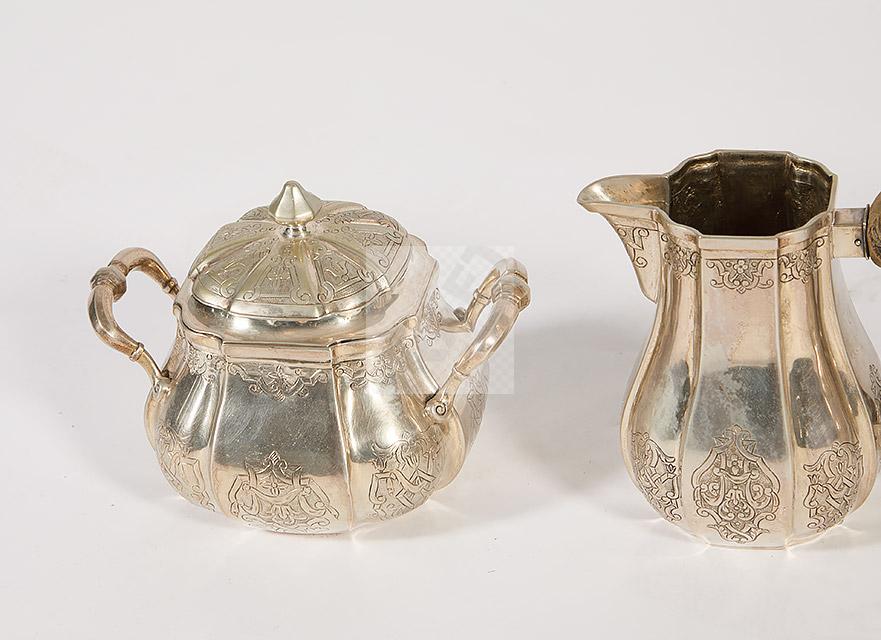 Lot n°9 - 9 Service à thé café en argent 800/1000 à larges côtes et décor ciselé de rincea