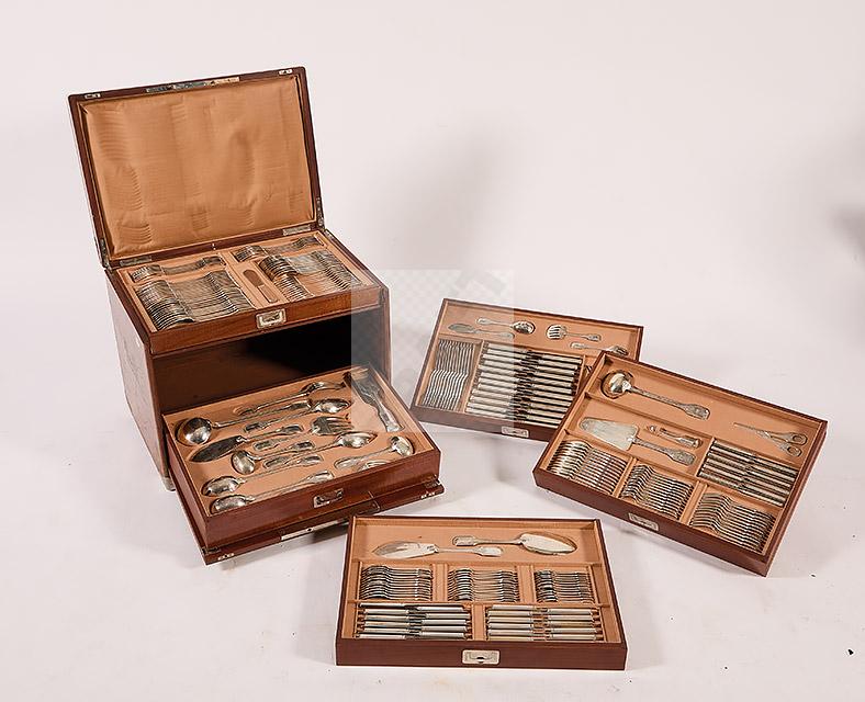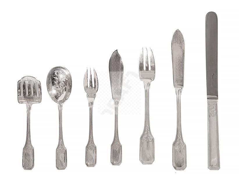 Pour un total de 239 pièces, chacune portant le poinçon Minerve, chiffrée et ornée d’un décor.