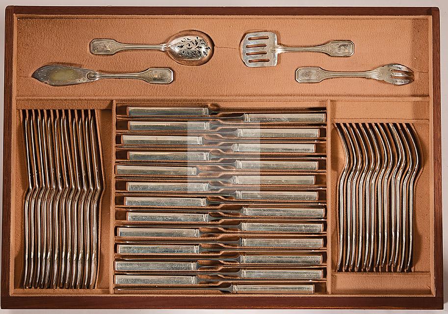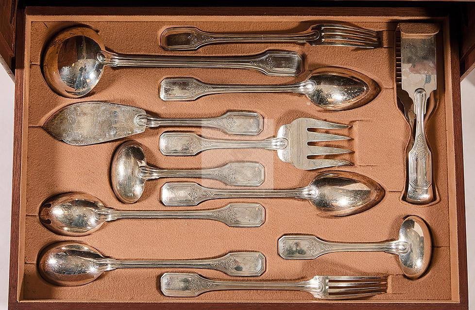 Poids net : 11 615 g (dont 12 couteaux à lame en argent pour 788 g)