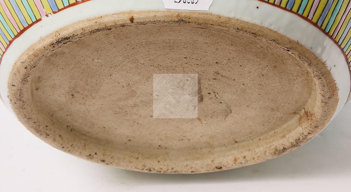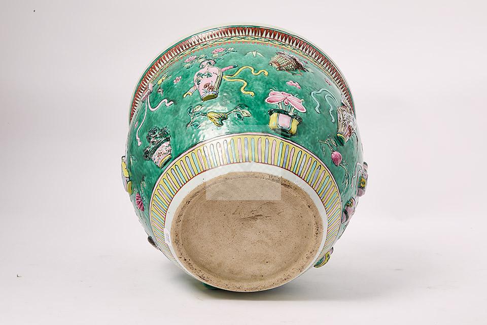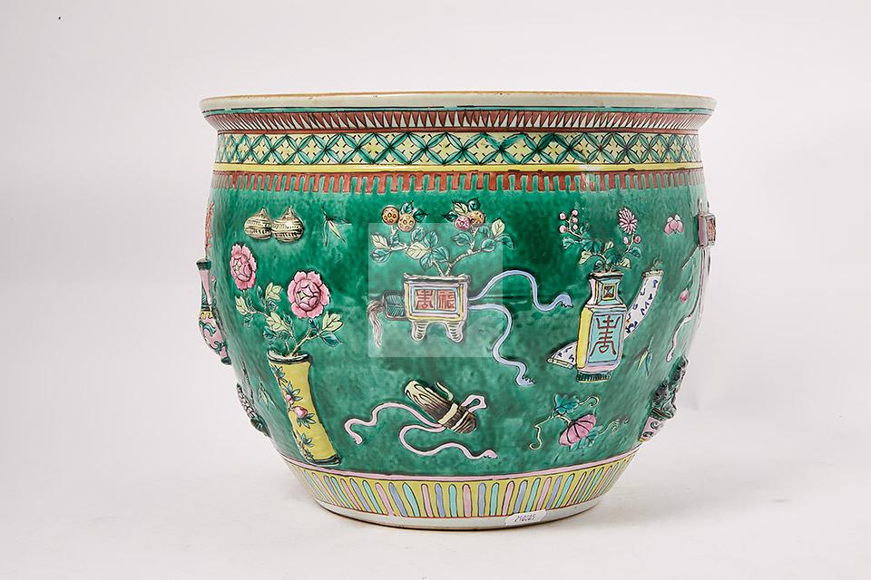 Lot n°75 - 75 CHINE Bac à carpes en porcelaine poychrome à décor de