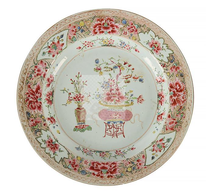 Lot n°77 - 77 Chine, XVIIIème siècle Plat en porcelaine famille rose à décor
