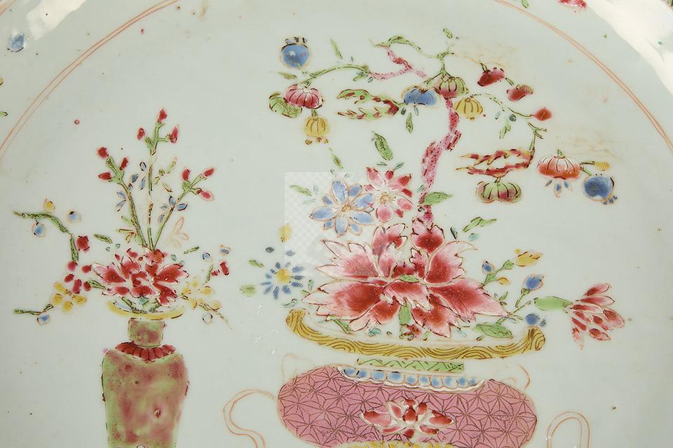 Plat en porcelaine famille rose à décor de vases fleuris