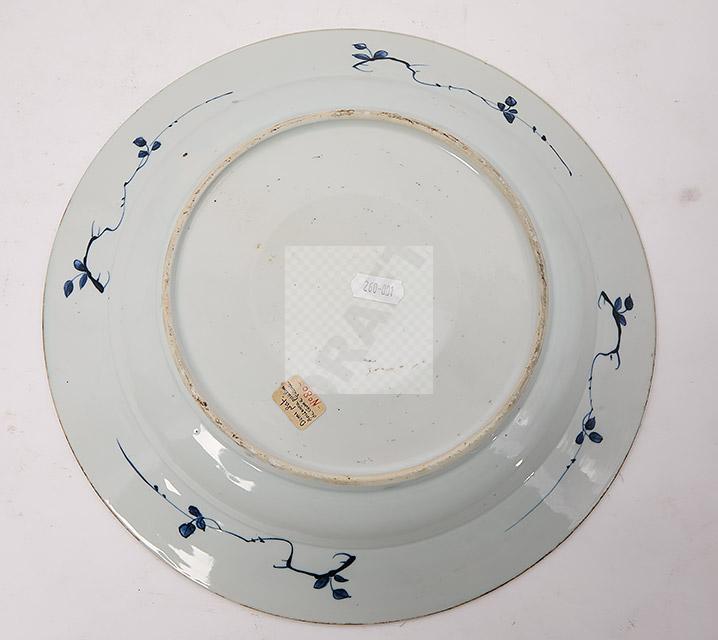 Lot n°87 - 87 Plat en porcelaine de Chine camaïeu bleu à décor d’éventail et vase fleuri