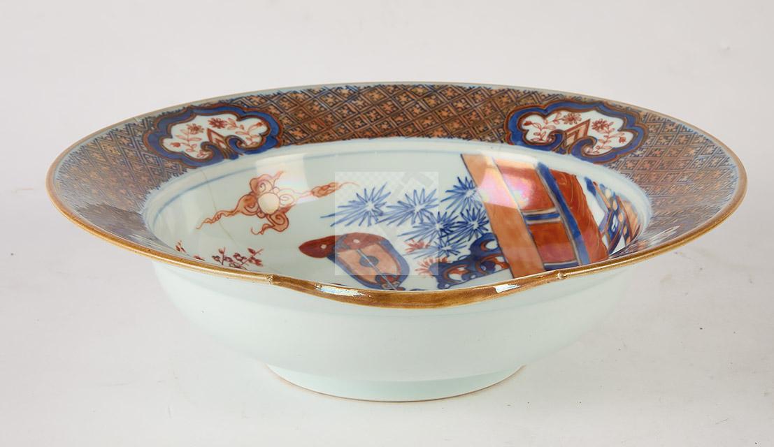 Lot n°89 - 89 Chine, XVIIIème siècle Plat à barbe en porcelaine polychrome à