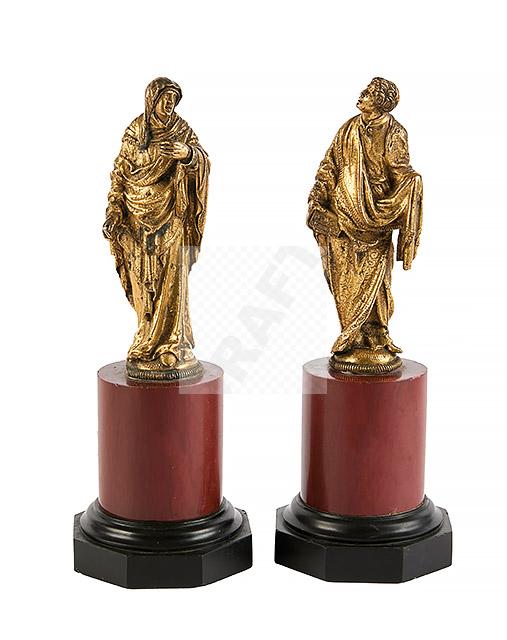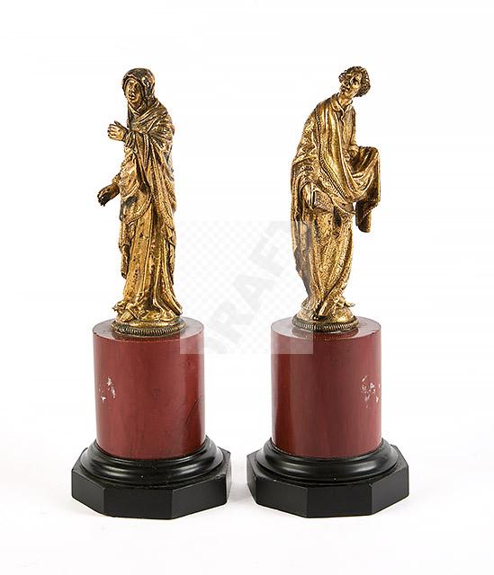 Lot n°106 - 106 Vierge et saint Jean de Calvaire en bronze ciselé et doré, fonte creuse.