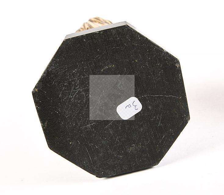 sur un socle en marbre rouge et noir.