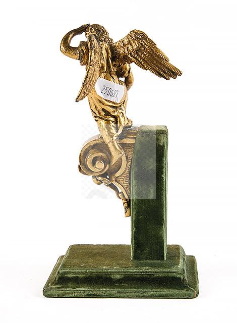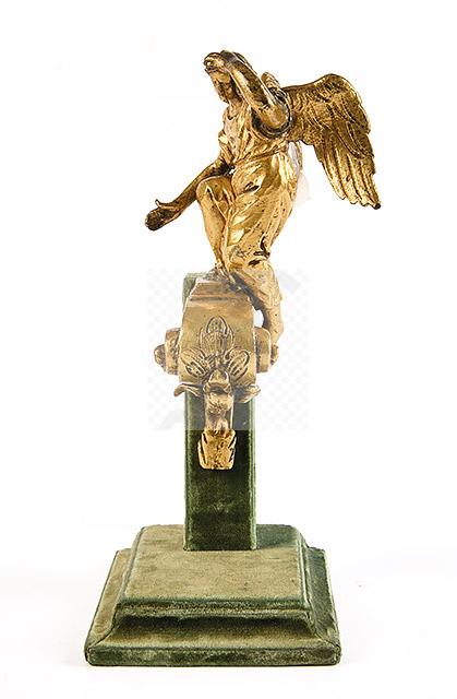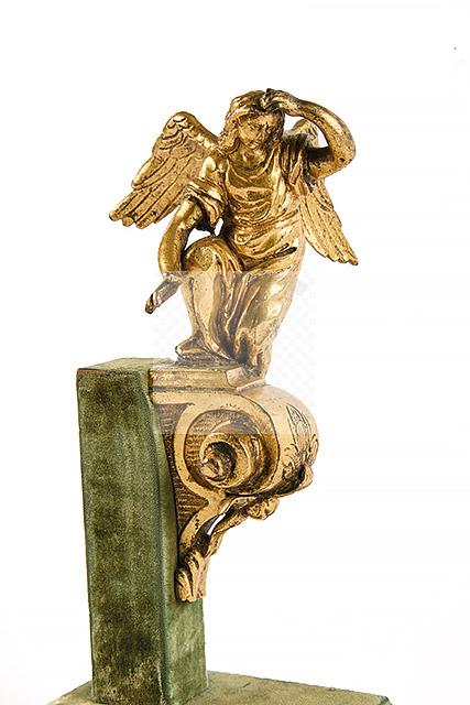 126 Ange adorateur en bronze ciselé et doré. A genoux sur un console, il a les ailes déployées.
