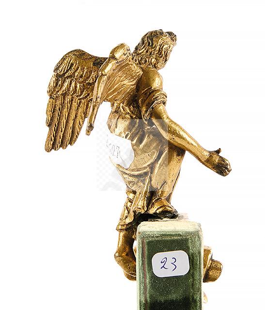 Lot n°126 - 126 Ange adorateur en bronze ciselé et doré. A genoux sur un console, il a les a