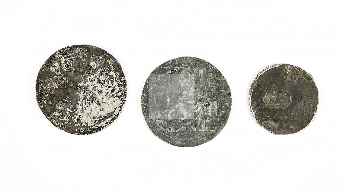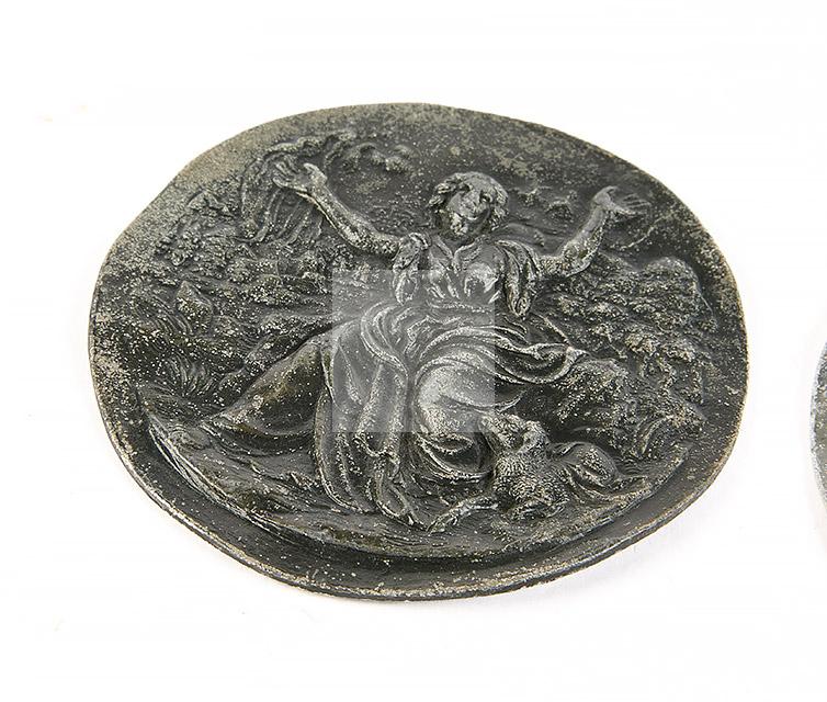 Lot n°133 - 133 Deux médaillons en plomb estampées et ciselées représentants la Patience et