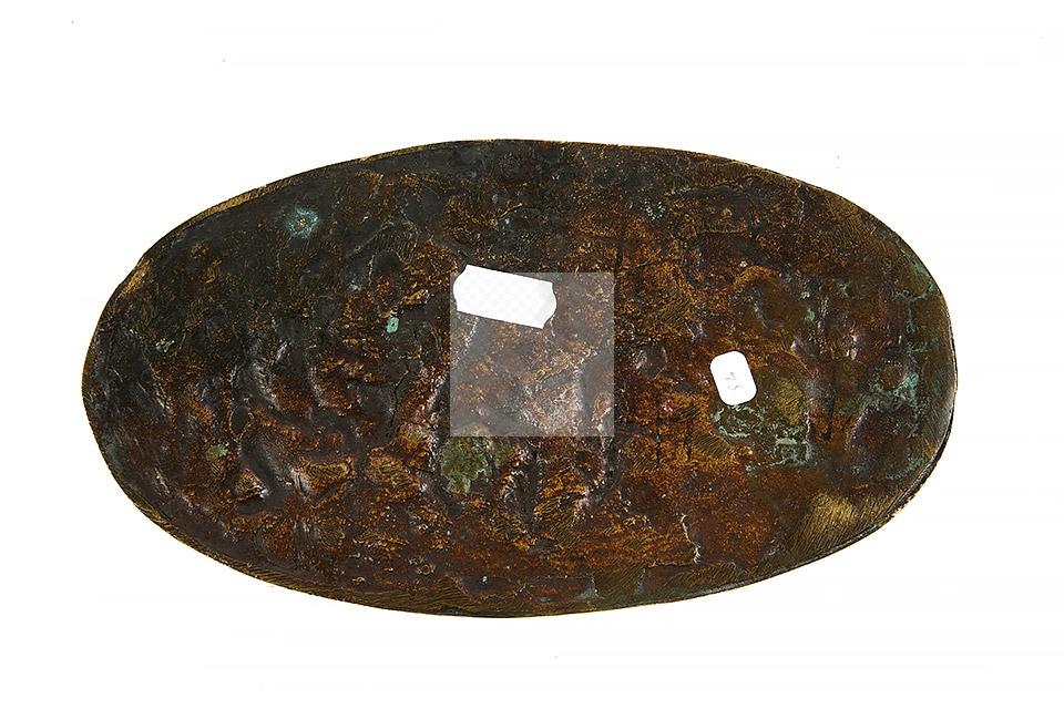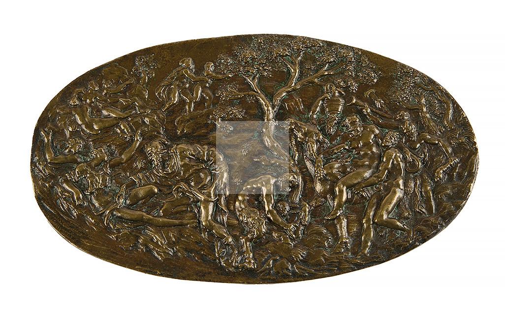 156 Plaquette en bronze de forme ovale représentant une scène bachique et la chute des Titans.