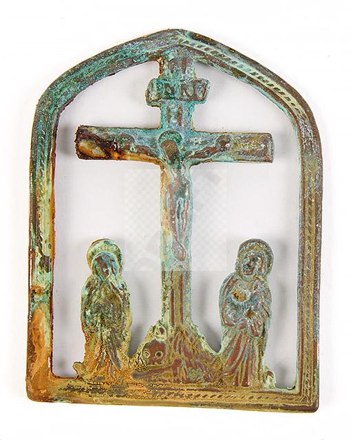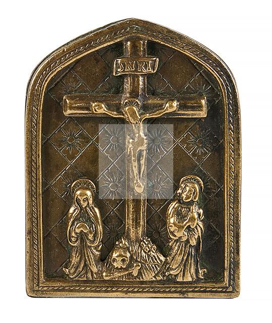 163 Petit baiser de paix en bronze représentant la Crucifixion.