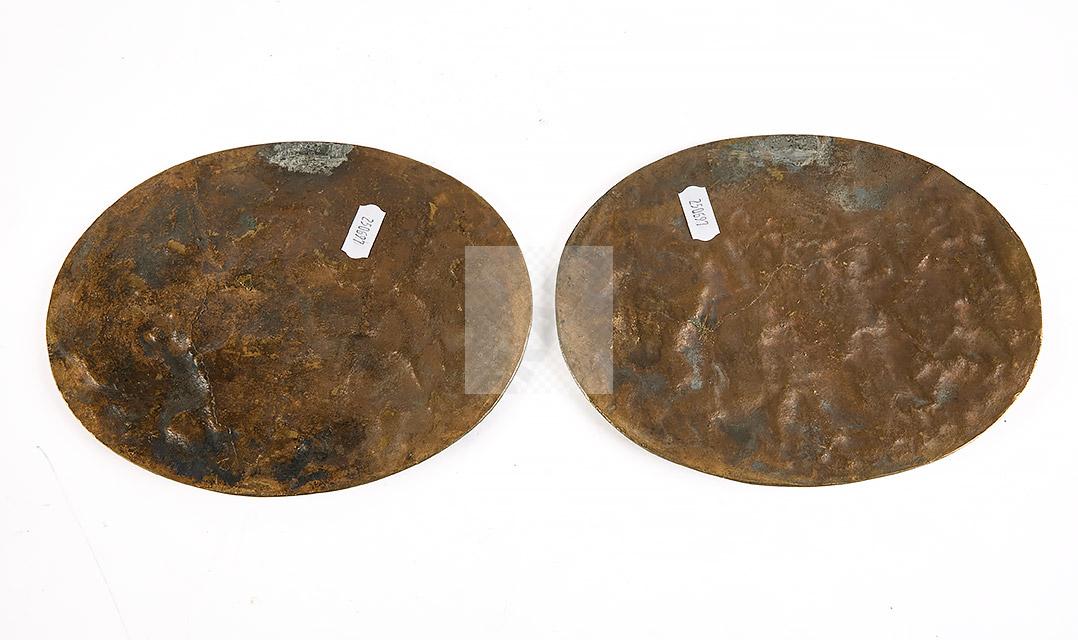 Lot n°164 - 164 Paire de plaques ovales en bronze représentant la Conversion de Paul et la L