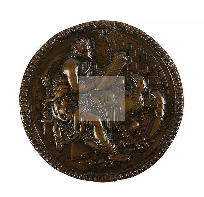 Lot n°178 - 178 Médaillon en bronze représentant saint Jean écrivant les Évangiles.