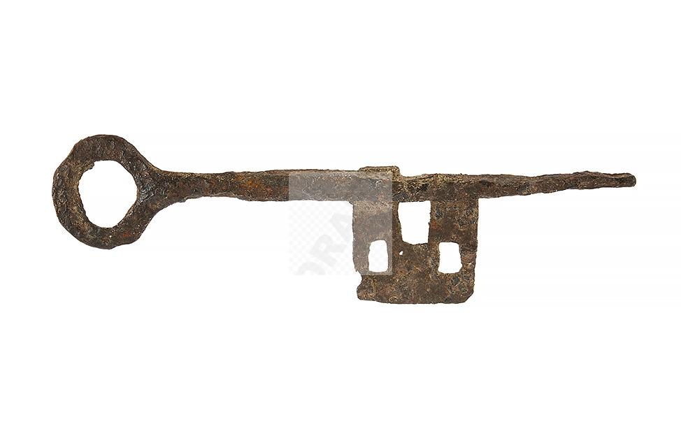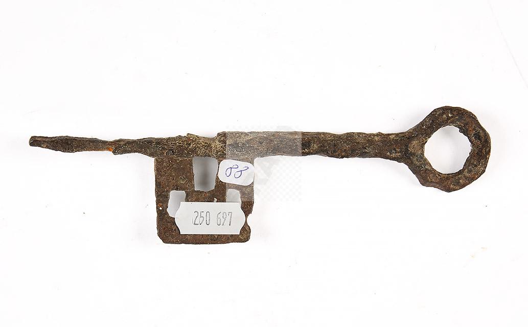 Lot n°191 - 191 Clef gothique en fer forgé, panneton repercé, anneau circulaire.