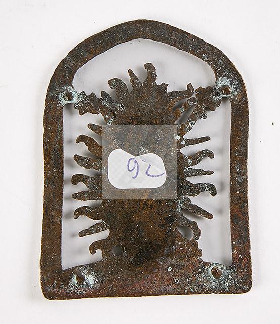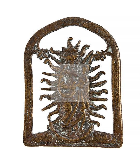 Lot n°195 - 195 Petite plaquette en bronze ajouré représentant la Vierge à l’Enfant, élément