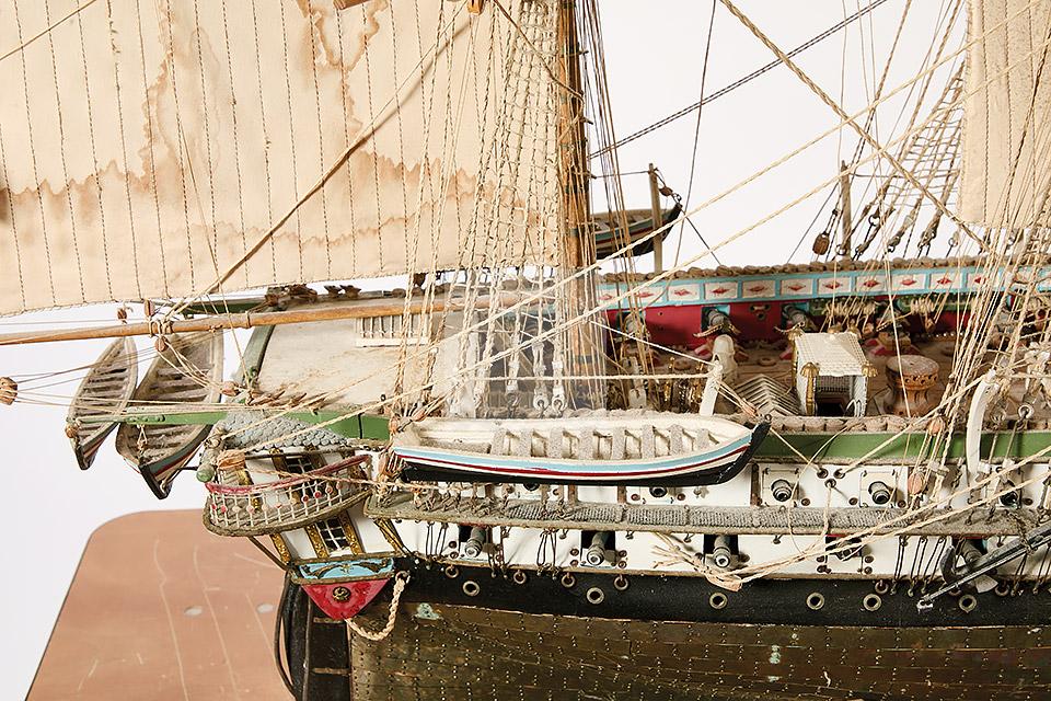 Lot n°223-B - 223 Bis Importante maquette de trois mâts en bois polychrome richement détaillé.