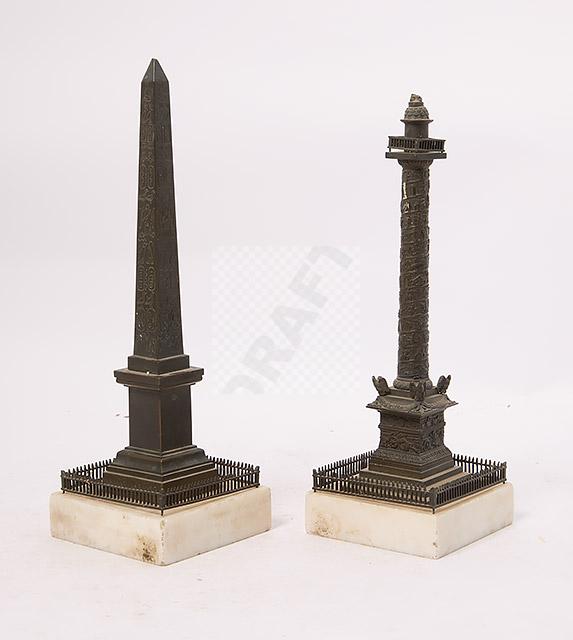 Lot n°252 - 252 Obélisque de la Concorde et colonne Vandôme en bronze et marbre