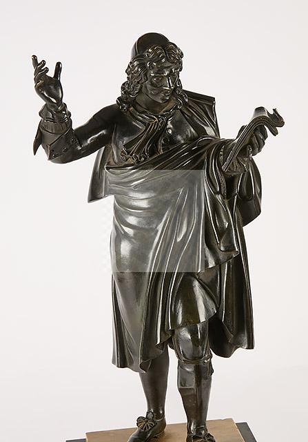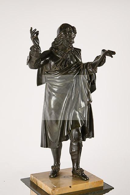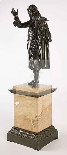 Lot n°264 - 264 Voltaire en pied Sculpture en bronze patiné, socle quadrangulaire en