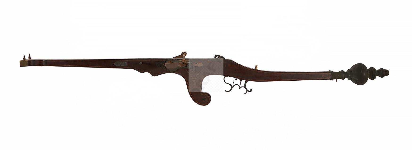 Lot n°277 - 277 Arbalète à poser en palissandre marqueté de filets de bois clair et laiton g