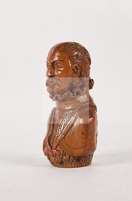 290 Pommeau de canne en buis sculpté à décor de Monarque