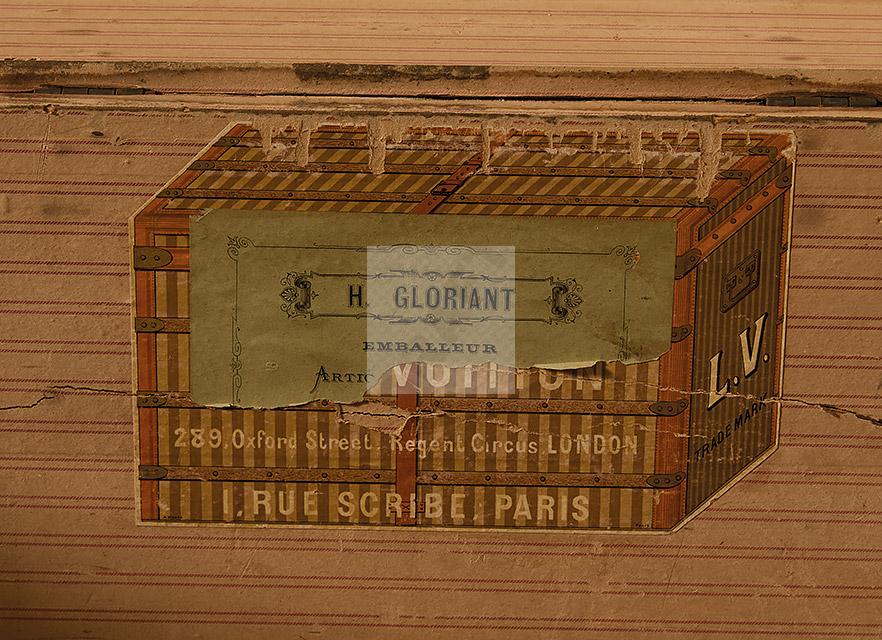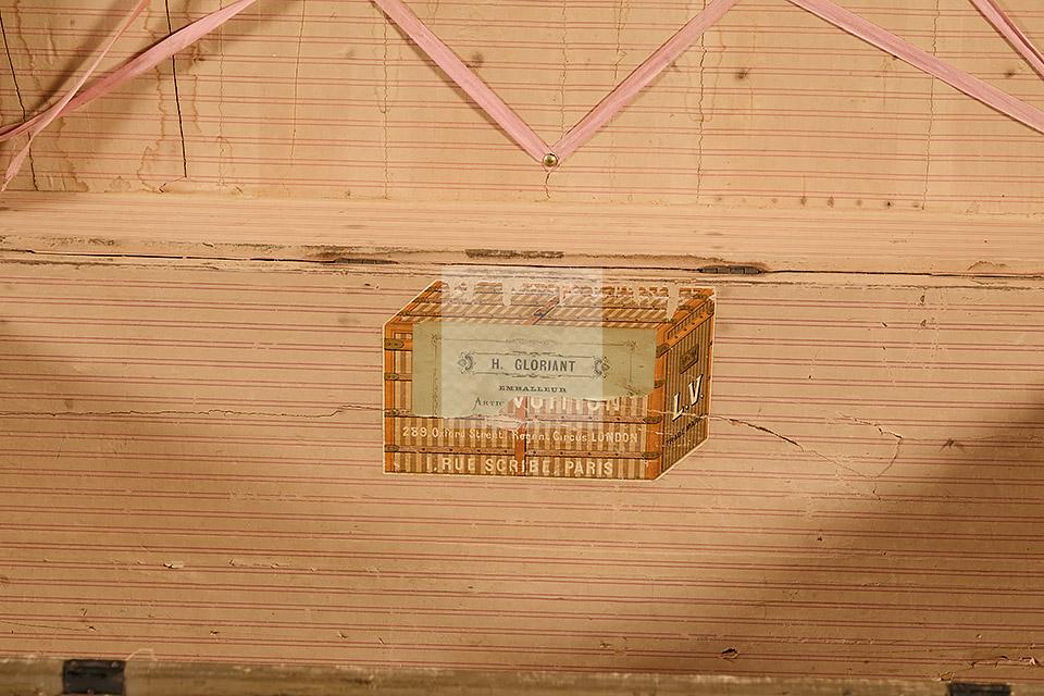 Présente à l’intérieur une étiquette de la boutique Louis Vuitton, rue Scribe à Paris, ainsi qu’une étiquette « H. Gloriant, emballeur ».