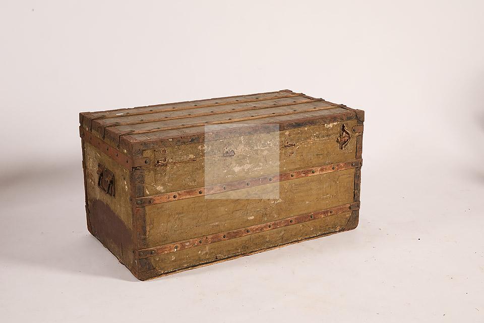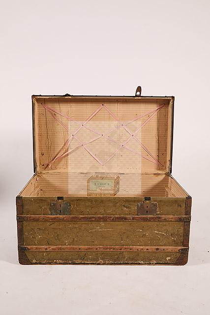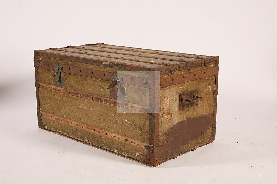 Lot n°307-B - 307 Bis LOUIS VUITTON Malle de voyage en bois enduit de