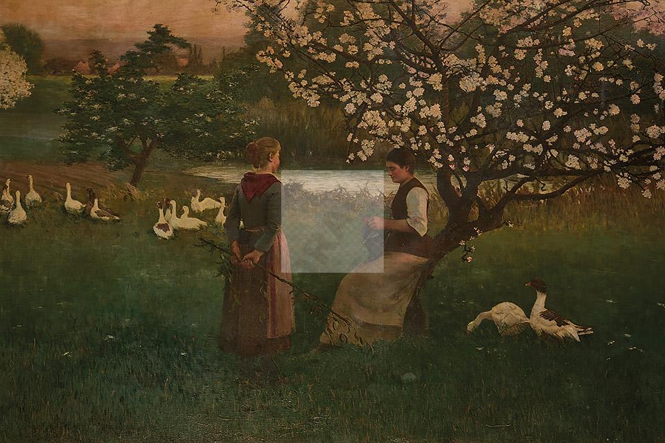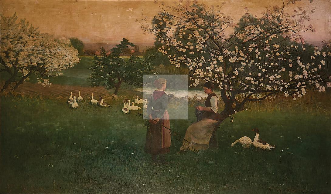 Élève à l’École des beaux-arts de Paris sous la férule de Jules Lefebvre et Benjamin-Constant, Bouchor expose au Salon des artistes français dès 1878. Grand voyageur, il puise son inspiration dans les paysages d’Italie, du Maroc et d’Égypte avant de découvrir, dans les années 1880, la Normandie. Installé à Freneuse vers 1886, séduit par les rives de la Seine, il y séjourne près de quinze ans, à sa période de pleine maturité artistique. Ce village et ses habitants deviennent des motifs récurrents de son uvre, incarnant une vision poétique et intime de la vie rurale.