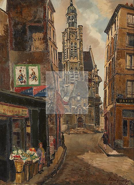 Saint-Étienne-du-Mont, vue de la rue de la Montagne Ste Geneviève, 1929