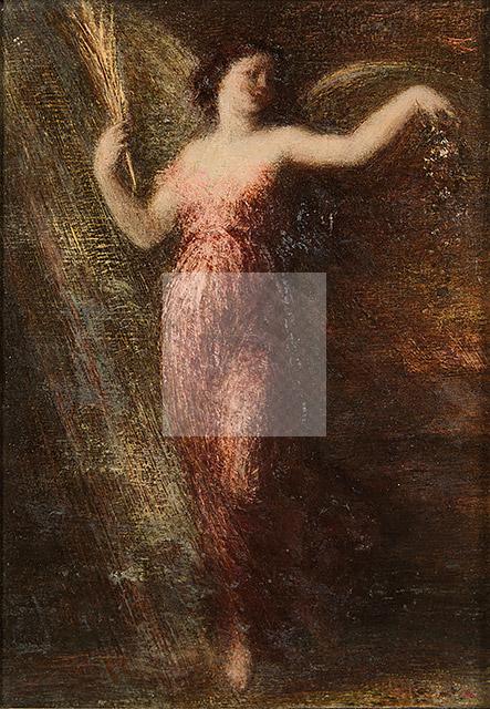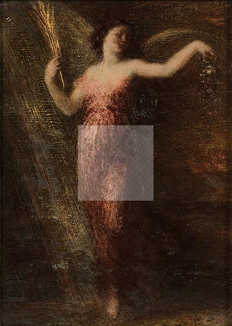 « Je ne me plains pas, j’ai un marchand qui m’achète tous les tableaux que je fais dans le genre de celui que je fais pour le Salon ; enfin je peux faire les choses que j’ai désiré faire ; le seul ennui, c’est de ne pas être jeune ! », écrit Fantin dans une lettre à son ami Otto Schölderer en 1896. C’est ainsi que l’artiste revient sur le sujet de l’Immortalité et reprend ce thème dans notre tableau dans un format réduit, destiné à la vente dans la galerie de Tempelaere. Ce fut, encore une fois, un succès, puisqu’en 1898, L’Estampe Moderne propose cette nouvelle variation en lithographie, accompagnée d’un poème extrait des Sonnets de William Shakespeare et accessible au plus grand nombre.